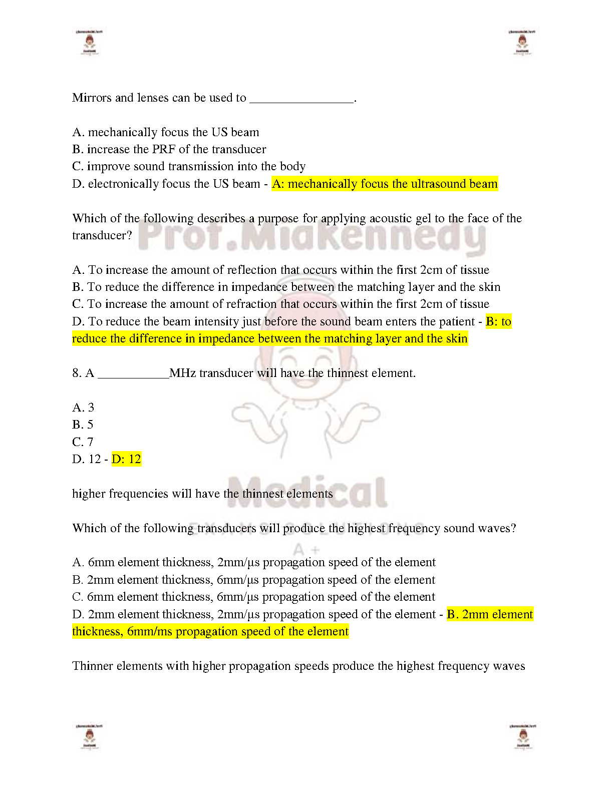 Master the principles of ultrasound physics and ace your ARDMS SPI registry exam with our comprehensive test bank for 'Understanding Ultrasound Physics,' 5th Edition by Sidney K. Edelman and Steven M. Penny. This vital study tool features a vast collection of exam-style questions with verified answers, covering all key topics, including Transducers. Boost your confidence and ensure you pass your sonography certification on the first attempt with this indispensable Q&A guide.