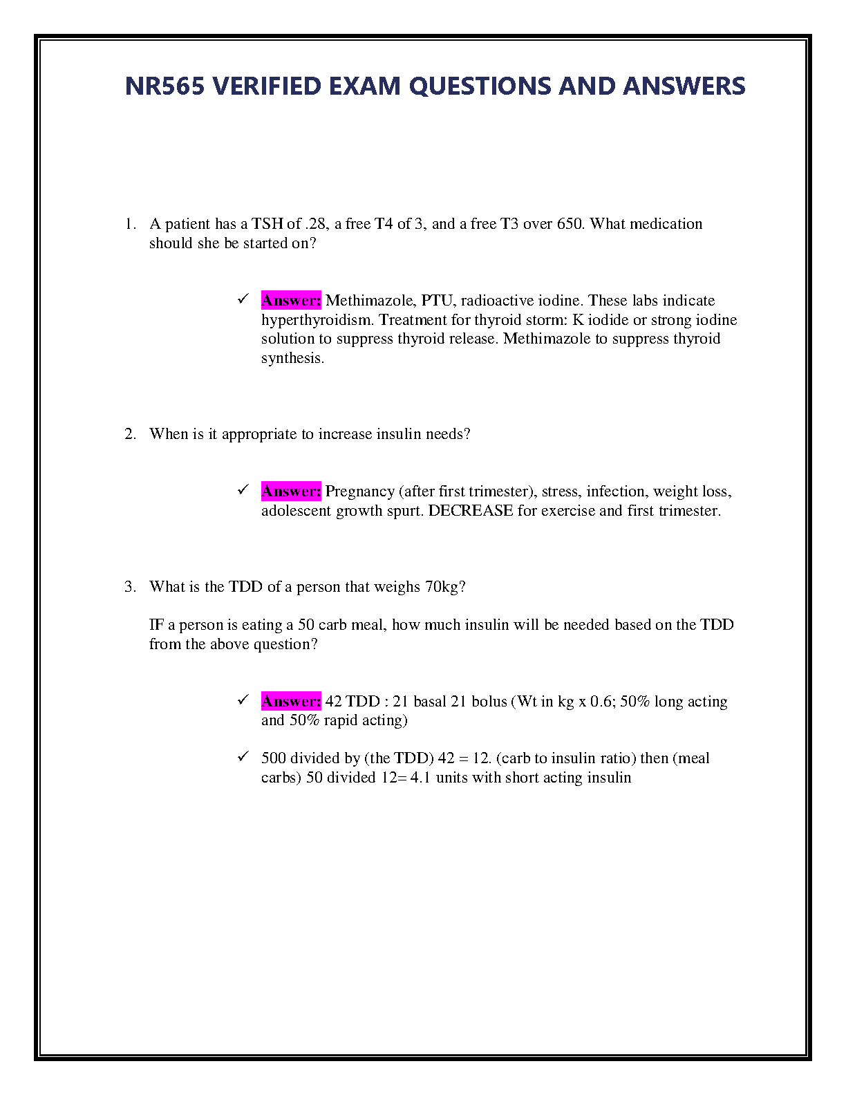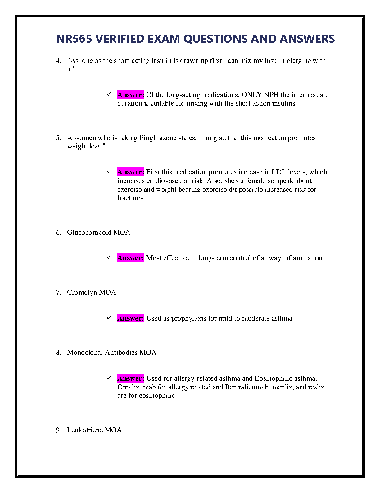 Excel in your NR565 Advanced Pharmacology Fundamentals course with our comprehensive and verified test bank for the 2024/2025 academic year. This essential study guide provides a complete collection of exam questions paired with detailed, accurate answers, covering all critical topics from the curriculum. Master concepts like pharmacokinetics, pharmacodynamics, and clinical drug applications. Designed to help you ace your exams and pass on the first try, this resource is your key to success in your advanced nursing studies. Get instant access and start preparing with confidence today!