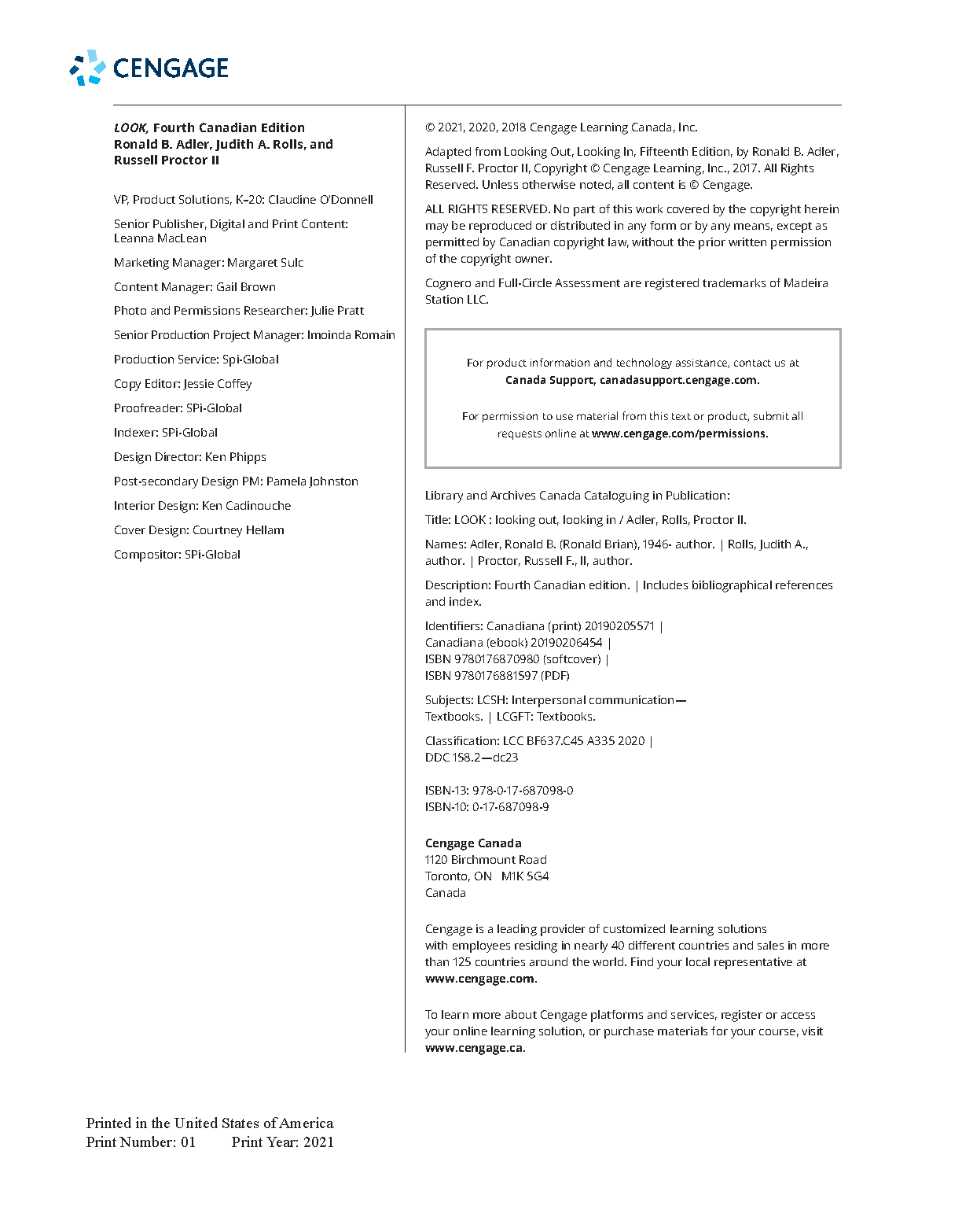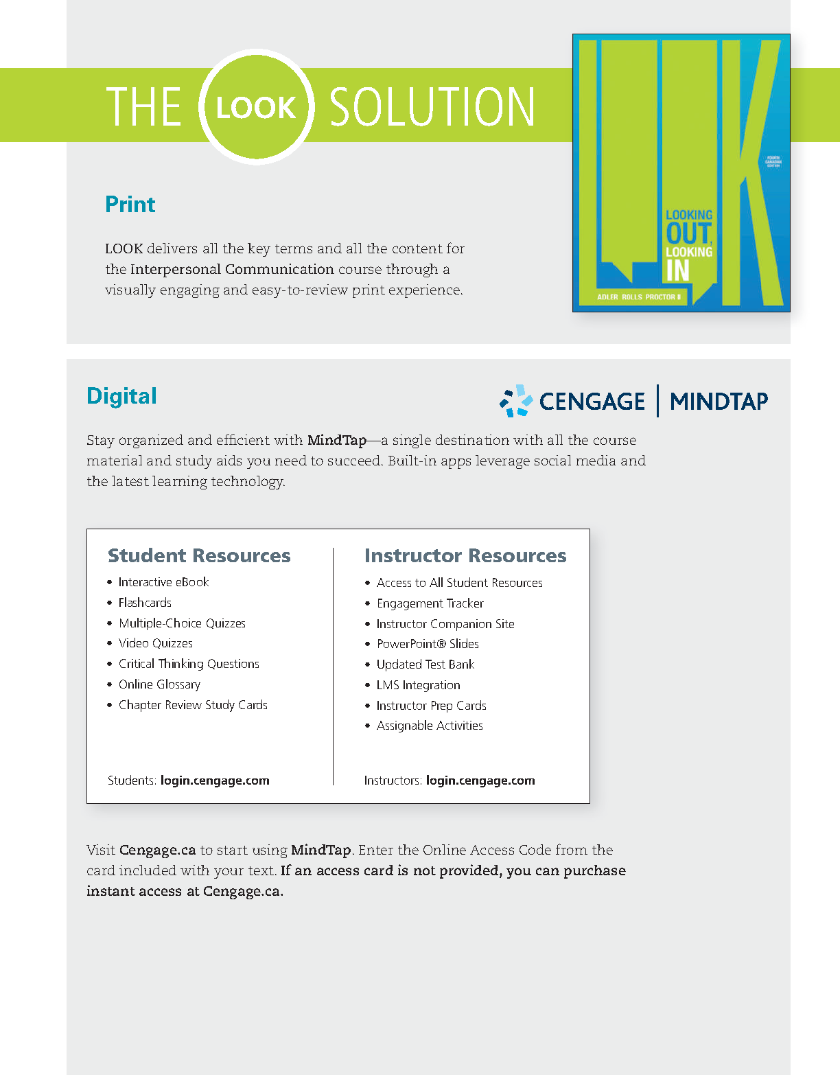 Test Bank for Looking Out, Looking In, 4th Canadian Edition, by Ronald B. Adler, Judith A. Rolls, and Russell F. Proctor II