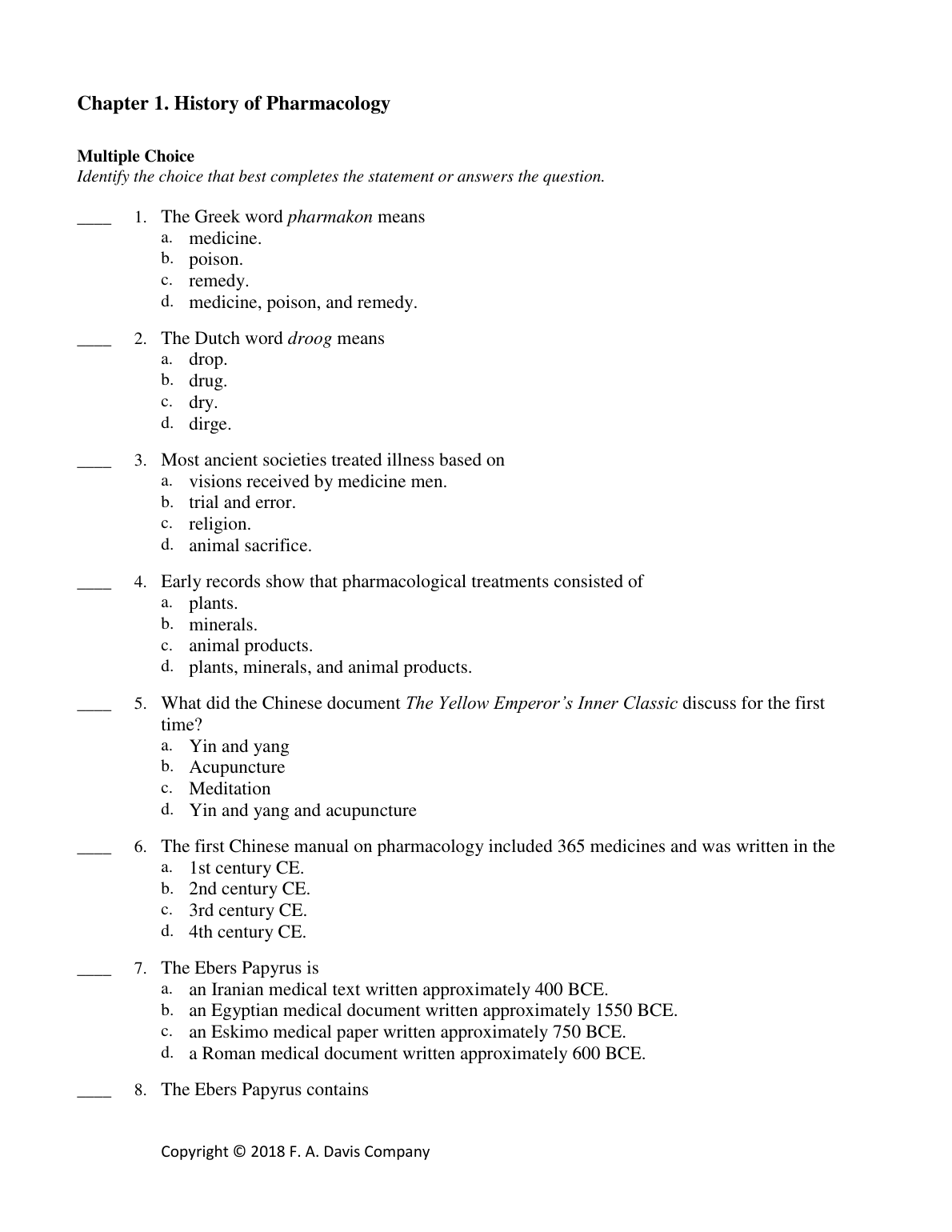 TEST BANK : Chapter 1. History of Pharmacology COMPLETE SET