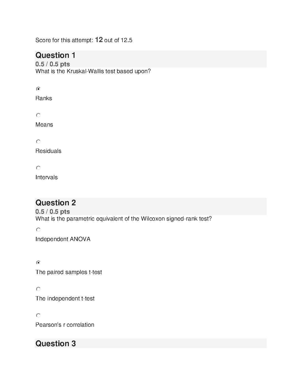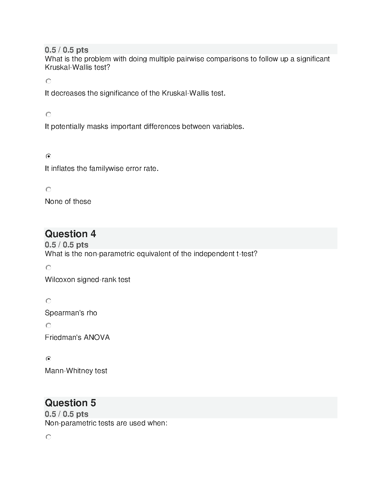 Statistics Test Bank: Complete Q&A for Non-Parametric Tests (Kruskal-Wallis, Wilcoxon) and Parametric Equivalents