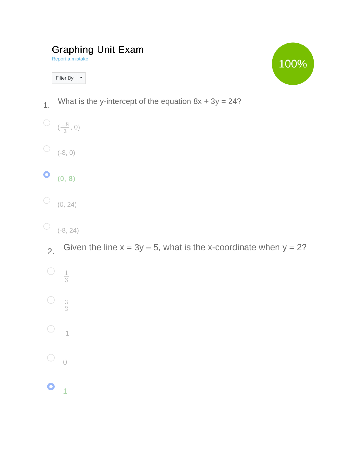 Test Bank for Algebra 1, 1st Edition by Ron Larson and Laurie Boswell - Graphing Unit Exam with Correct Answers