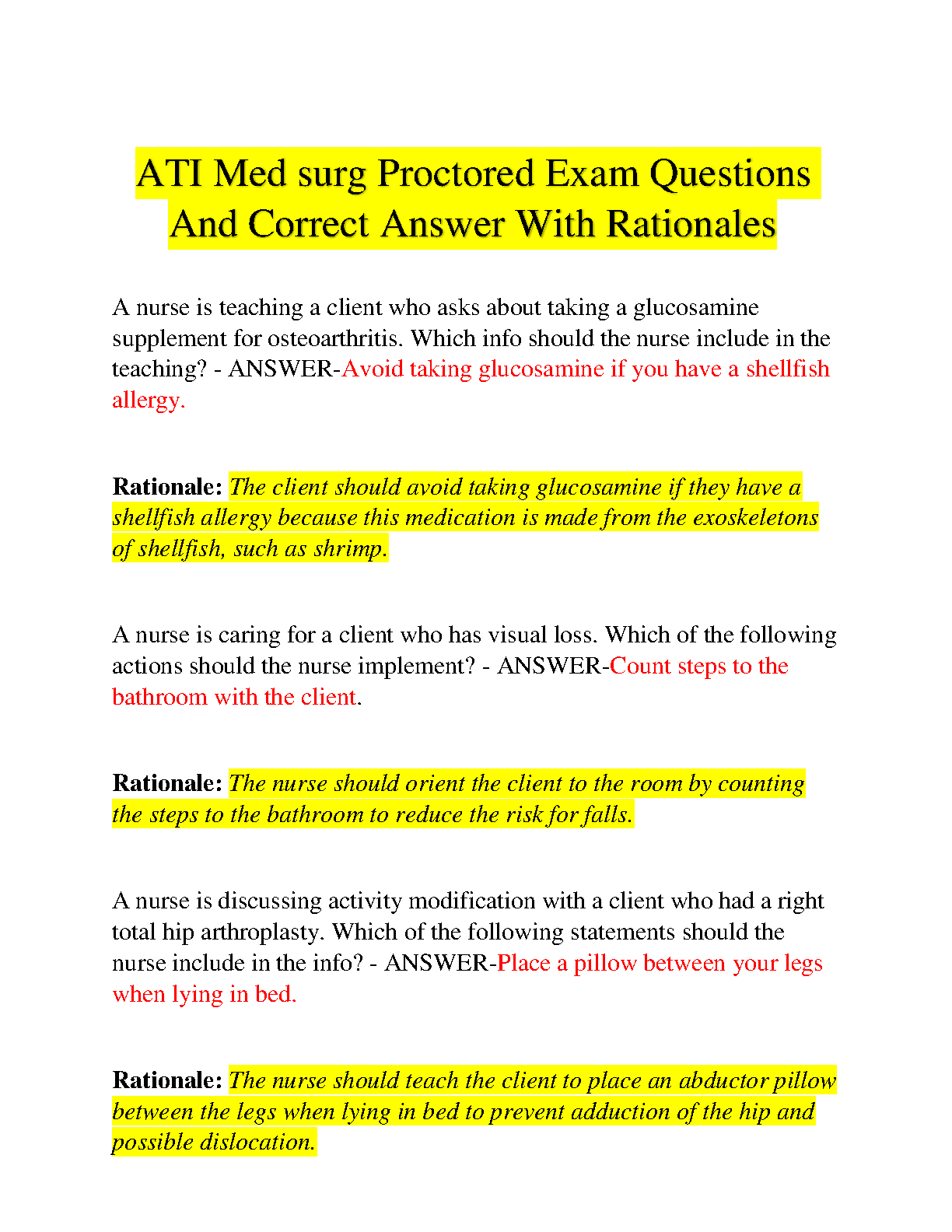 ATI Med Surg Proctored Exam Test Bank 2025/2026: Comprehensive Q&A with Rationales to Ace Your Exam
