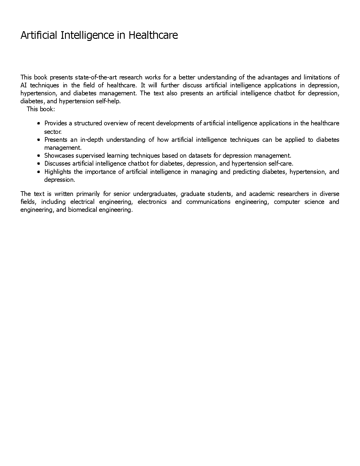 Master the revolutionary intersection of technology and medicine with this essential 2025/2026 guide to 'Artificial Intelligence in Healthcare'. Authored by experts Gourav Bathla, Sanoj Kumar, Harish Garg, and Deepika Saini, this resource offers a deep dive into intelligent data-driven systems, focusing on the management of diabetes, hypertension, and depression. Perfectly tailored for students aiming for first-time exam success, it simplifies complex AI concepts and their practical applications. Equip yourself with the knowledge to excel and avoid resits with this unparalleled study companion.