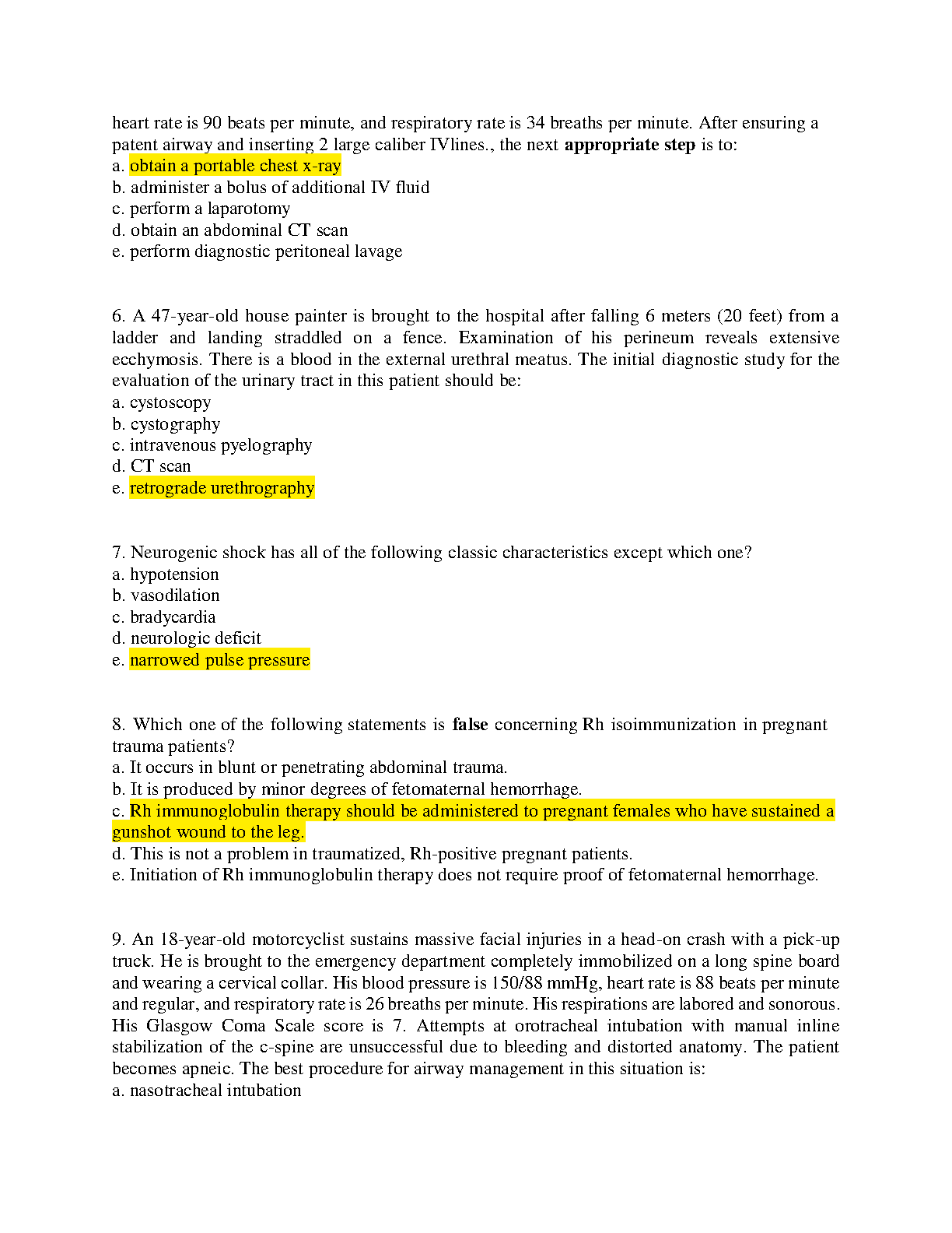ATLS 10th Edition Post Test MCQ Test Bank with Answers | American College of Surgeons