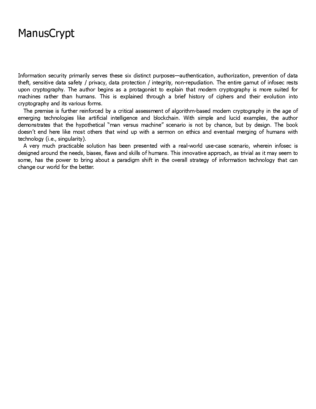 Explore the groundbreaking field of human-centered information security with 'MANUSCRYPT'. This comprehensive resource redefines cybersecurity by placing human behavior at its core, offering innovative strategies designed for real-world application. Updated for the 2025/2026 academic year, this guide provides all the essential concepts, methodologies, and insights you need to master your coursework and excel in your exams. Stop worrying about resits and secure your success on the first try. This resource breaks down complex topics in information security, cybersecurity, and human-computer interaction, making it the perfect study companion for both students and professionals.