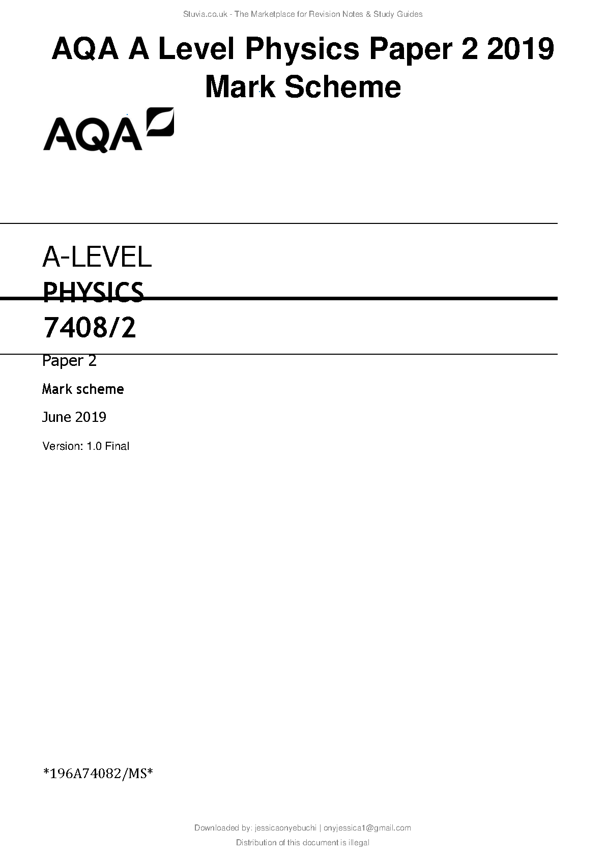 AQA A-Level Physics Paper 2 (7408/2) Official Mark Scheme | 2025/2026 Exam Prep to Pass on Your First Attempt