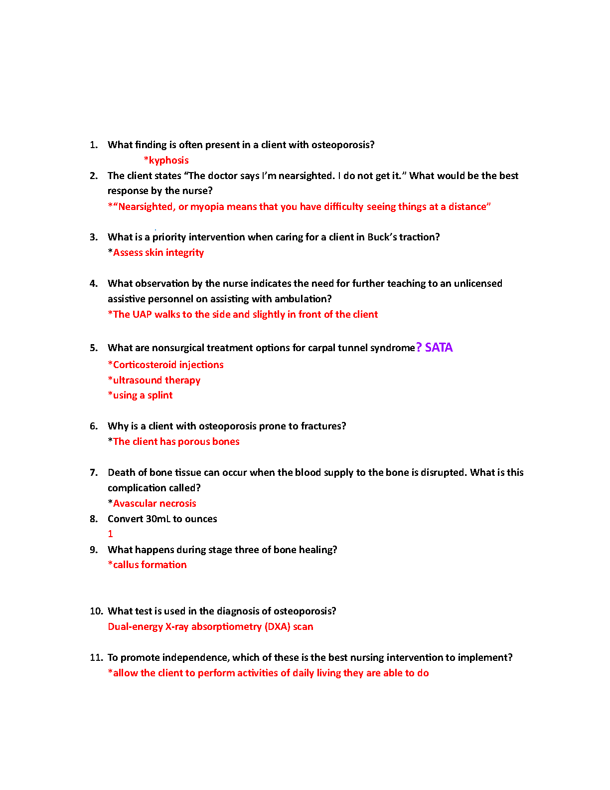 Unlock your full potential in Medical-Surgical Nursing with this comprehensive Test Bank for the 11th Edition of 'Medical-Surgical Nursing: Concepts for Interprofessional Collaborative Care' by Ignatavicius, Workman, Rebar, and Heimgartner. This invaluable resource provides a complete collection of exam questions and detailed answers, covering all essential topics from the textbook. Master complex concepts like musculoskeletal care, patient safety, and priority interventions as seen in these sample questions on osteoporosis, Buck's traction, and carpal tunnel syndrome. This study guide is expertly designed to help you prepare effectively, boost your confidence, and excel in your exams. Instant download available after purchase to start studying right away!