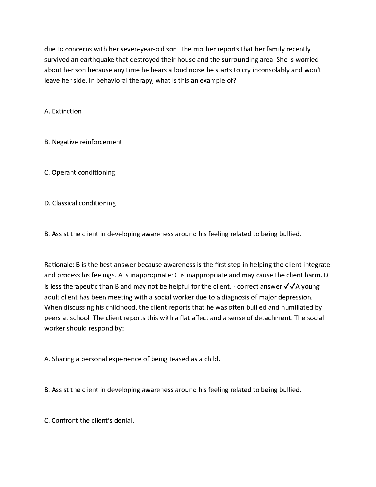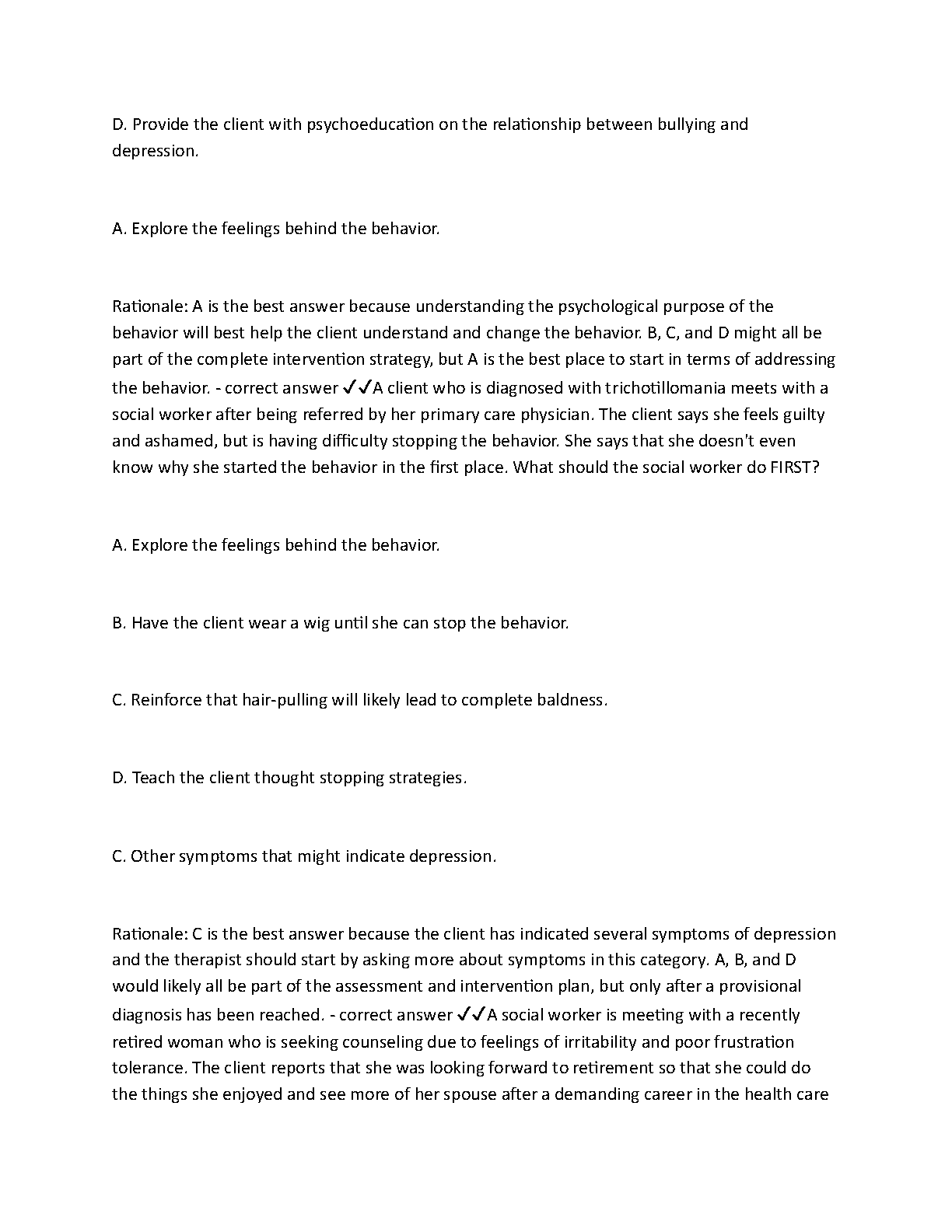 Get ready to ace your Licensed Clinical Social Worker (LCSW) exam with our newly updated 2025/2026 Test Bank. This essential study guide features a wide array of practice questions, each accompanied by a complete solution and a detailed rationale to clarify complex concepts. Our resource is specifically designed to mirror the actual exam format, covering critical topics you'll encounter. By working through these questions, you'll not only test your knowledge but also deepen your understanding, ensuring you walk into the exam room with the confidence needed to pass on your very first attempt. Avoid the stress of resits and secure your license with this ultimate preparation tool.
