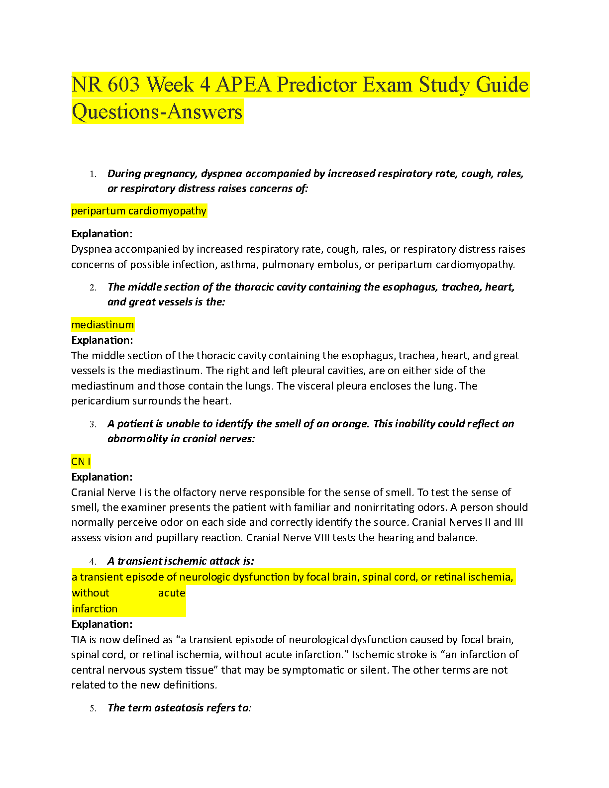 Struggling with NR 603? Ace your Week 4 APEA Predictor Exam with our expertly crafted 2025/2026 study guide. This comprehensive resource provides a full set of questions paired with detailed, verified answers, covering all essential topics you'll face on the test. Our guide is specifically designed to help you understand complex concepts, build confidence, and pass your APEA exam on the very first try. Stop worrying about resits and start preparing for success. Download now and get the grade you deserve!