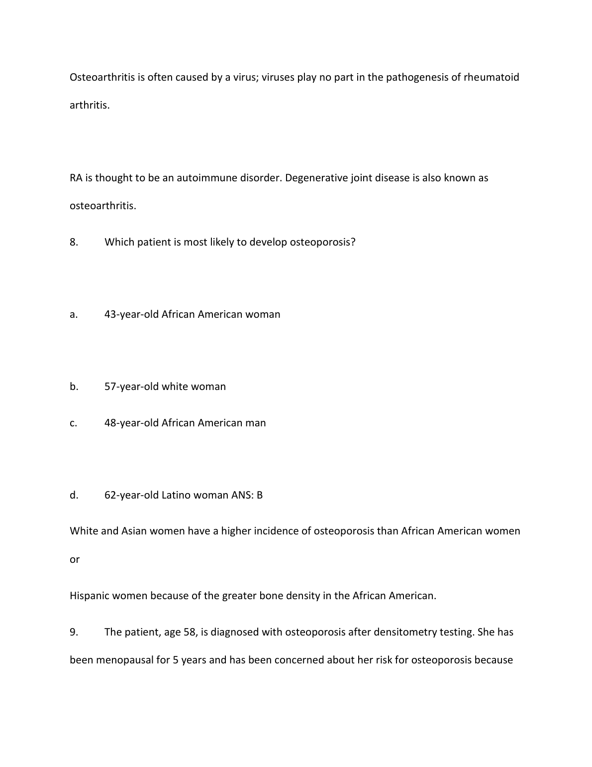 ATI Primary Care, Art and Science of Advanced Practice Nursing - Test Bank, Osteoarthritis and Osteoporosis, Questions and Answers with Explanations, 100% Correct