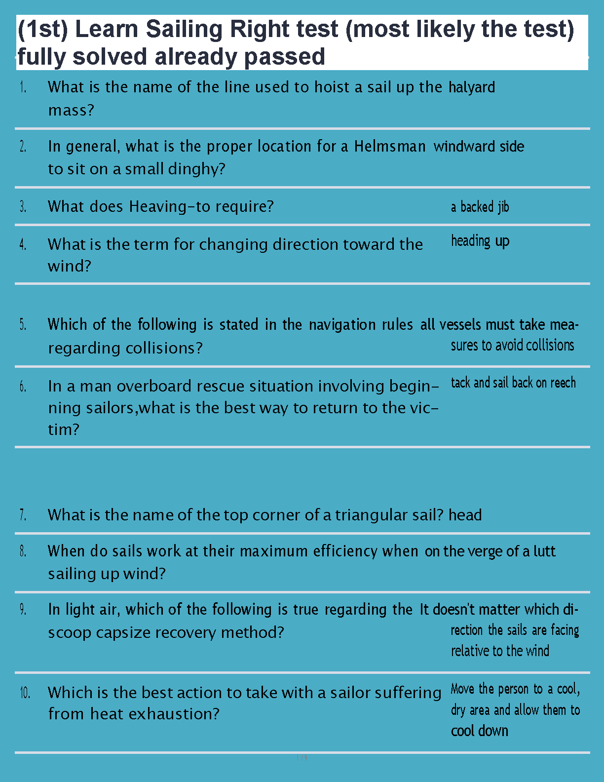 Learn Sailing Right! 1st Edition (US Sailing) Test Bank: Verified Questions and Answers to Ace Your Sailing Certification Exam