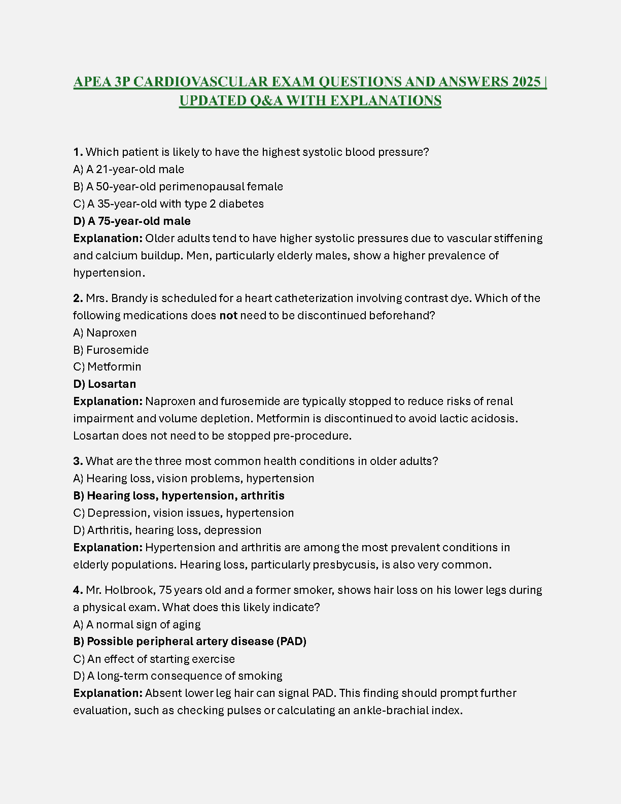 APEA 3P Cardiovascular Exam 2025/2026: Ultimate Q&A Guide with Explanations for First-Attempt Success