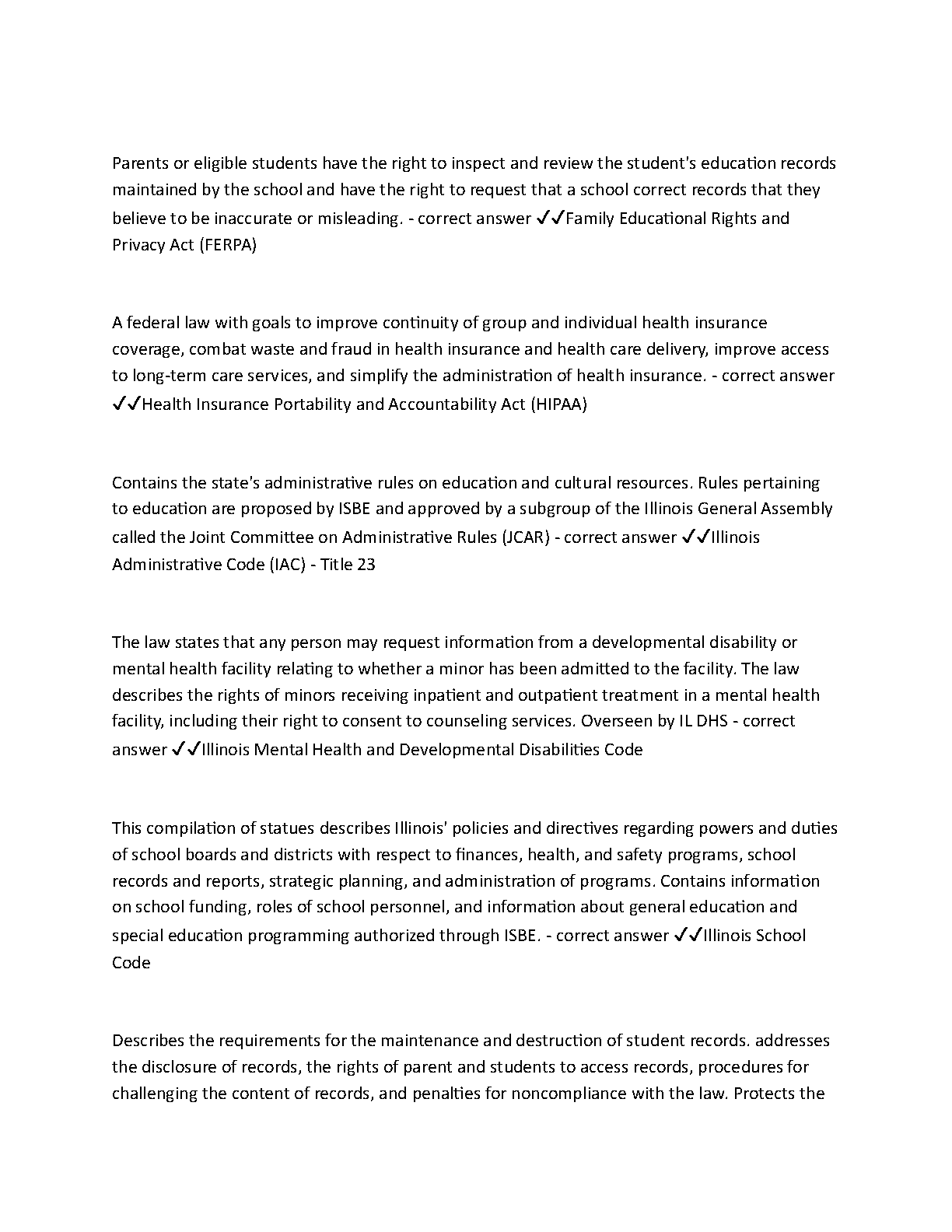 Prepare to pass your Illinois Professional Educator License (PEL) Social Work Content Exam on the first try! This comprehensive test bank is your ultimate study guide, featuring a meticulously compiled set of questions and expertly verified answers, all A+ graded. Master key concepts such as Functional Behavior Assessment (FBA), Behavior Intervention Plan (BIP), the Americans with Disabilities Act, and crucial state laws. Our up-to-date 2025/2026 resource is designed to give you the confidence and knowledge needed to excel, helping you avoid costly resits and fast-track your career as a licensed social worker in Illinois.