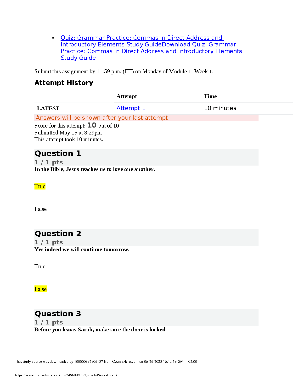 Ace your grammar exams with our latest 2025/2026 practice quiz on using commas in direct address and introductory elements. This essential study guide, tailored for Module 1, Week 1 curriculum, provides 10 true/false questions to solidify your understanding. With a focus on helping you pass on your first attempt and avoid resits, this resource is perfect for building confidence and mastering crucial punctuation rules. Download now and take the first step towards academic success!