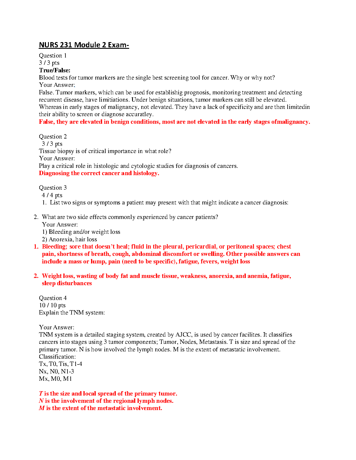 NURS 231 Module 2 Exam: Comprehensive Answers & Rationale (Cancer & TNM Staging) | 2025/2026 Study Guide to Ace Your Test
