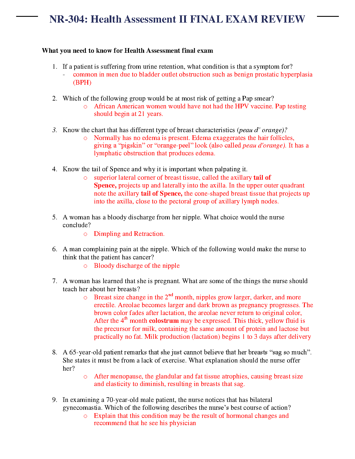 Unlock academic success in your nursing program with this comprehensive final exam review for NR-304: Health Assessment II. This meticulously crafted study guide provides detailed questions and answers covering all critical topics, including patient assessment for conditions like BPH, breast health (tail of Spence, peau d'orange, nipple discharge), changes during pregnancy and menopause, and much more. Designed for the 2025/2026 academic year and aligned with key concepts from the 9th Edition of Jarvis's Physical Examination & Health Assessment, this resource is your ultimate tool to master the material, build confidence, and pass your final exam on the very first try. Say goodbye to exam anxiety and avoid costly resits with these targeted review materials.
