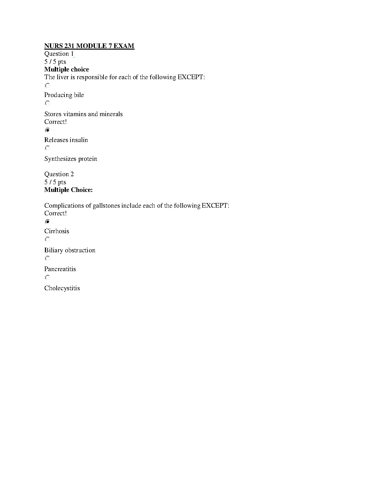 Unlock academic success in your NURS 231 course with our meticulously prepared test bank for the Module 7 Exam. This resource provides a complete set of questions and expertly verified answers, focusing on key pathophysiology concepts like liver functions and complications of gallstones. Ideal for comprehensive exam preparation, this study guide is your key to mastering the material and achieving top grades.