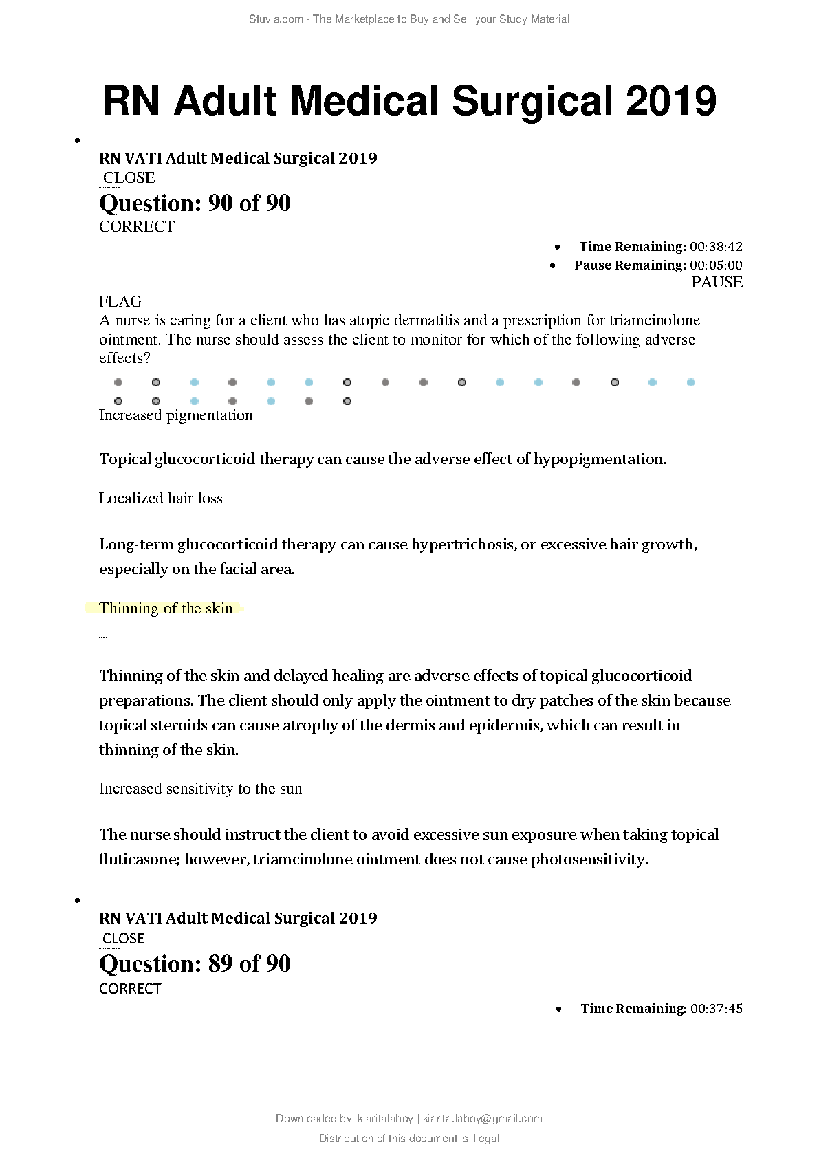 Get ready to excel in your Adult Medical-Surgical nursing course with the definitive 2025/2026 VATI Test Bank. This complete resource features all 90 exam questions, each accompanied by a verified correct answer and a detailed rationale to deepen your understanding. Covering crucial topics like pharmacology (e.g., topical glucocorticoids) and patient care, this guide is meticulously crafted to prepare you for the real exam. Boost your confidence, master the content, and ensure you pass your Adult Med-Surg exam on the first try. Avoid resits and secure your success with this essential study tool.