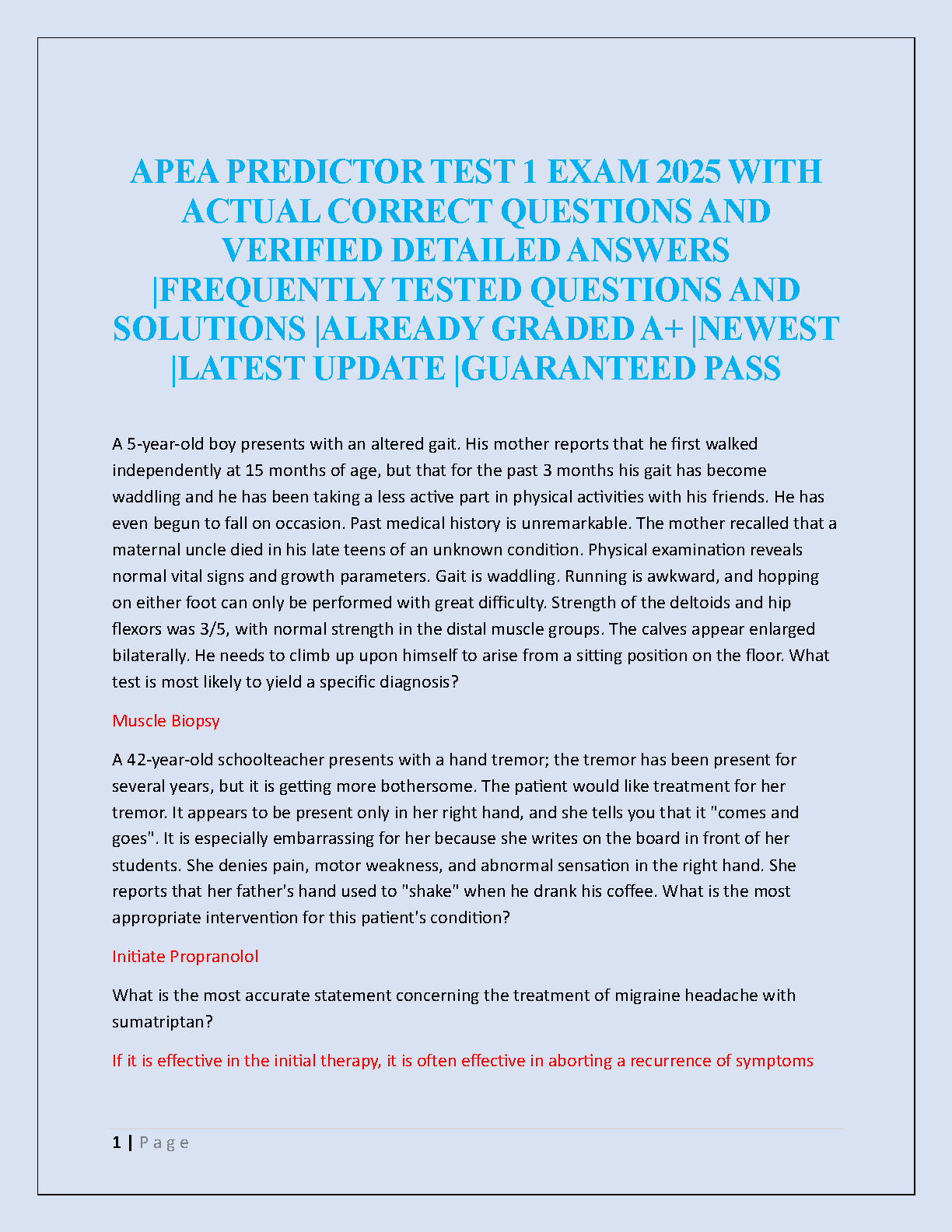 APEA Predictor Test 1 Exam 2025: Master the Exam with Verified Questions, Detailed Answers, and a Guaranteed A+ Grade