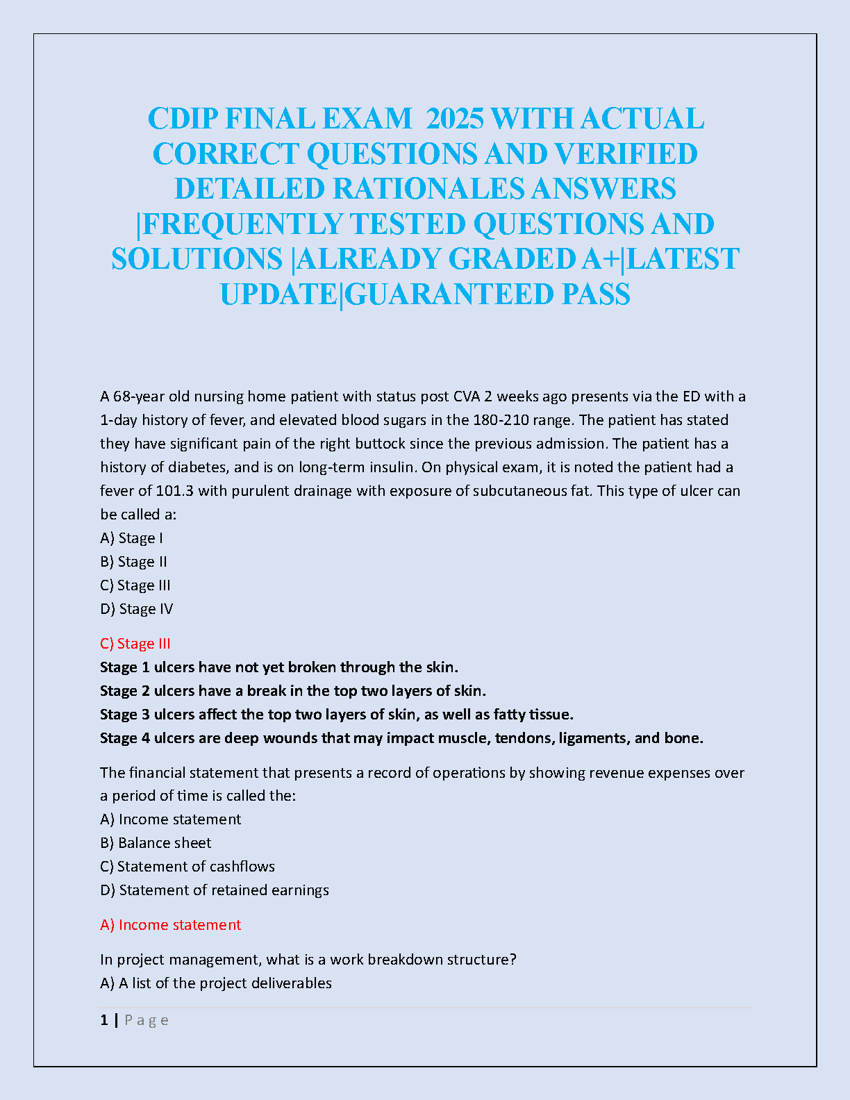 CDIP Final Exam Test Bank 2025/2026: Comprehensive Q&A with Detailed Rationales for a Guaranteed A+ Pass