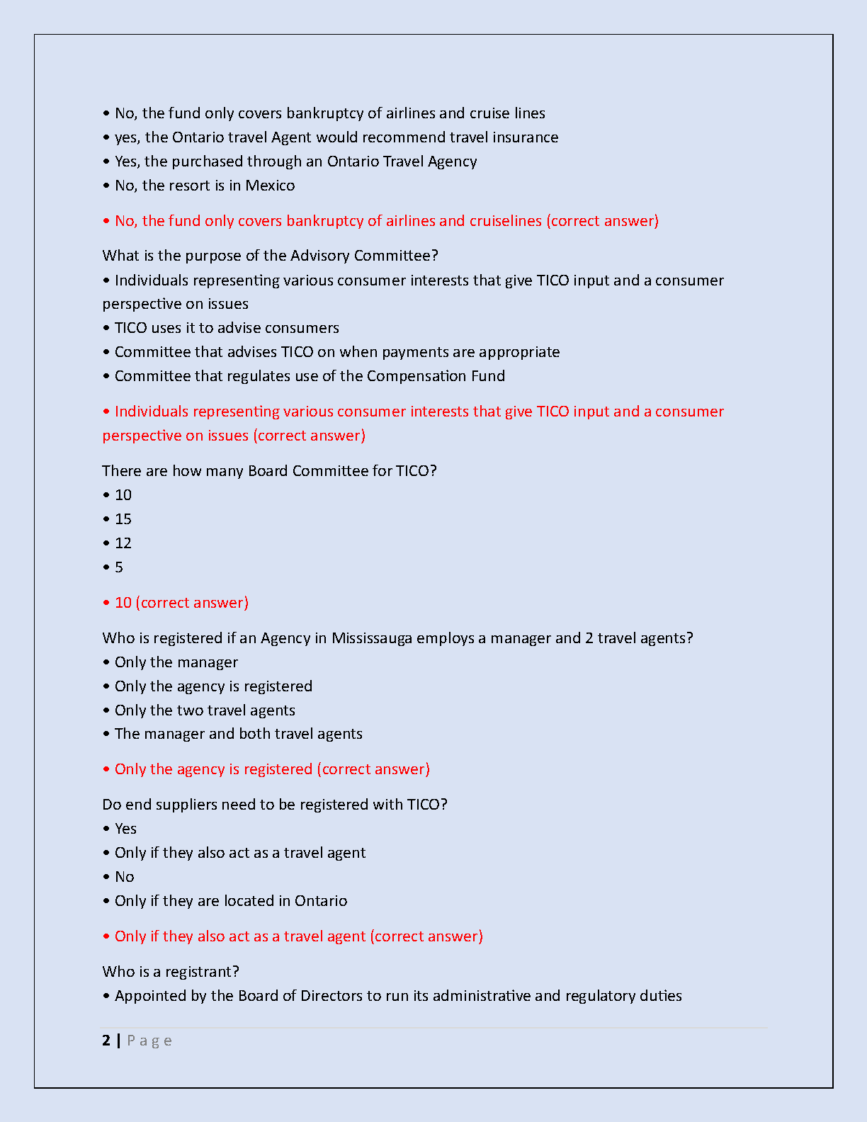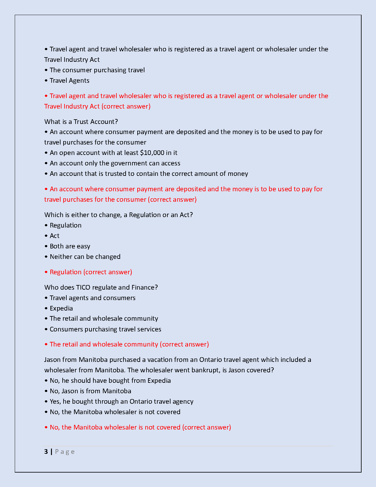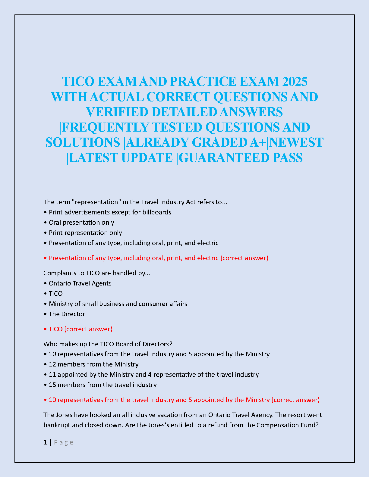 Prepare to pass your Travel Industry Council of Ontario (TICO) certification exam with confidence! This comprehensive test bank for the 2025/2026 season is your ultimate resource, packed with a wide range of actual, frequently tested exam questions and meticulously verified answers. Our study guide provides detailed solutions and explanations, ensuring you not only memorize the answers but truly understand the material. Already graded A+, this latest update is designed to help you ace the exam on your first attempt and avoid costly resits. Master key concepts from the Travel Industry Act and more, and get on the fast track to becoming a certified travel professional in Ontario.