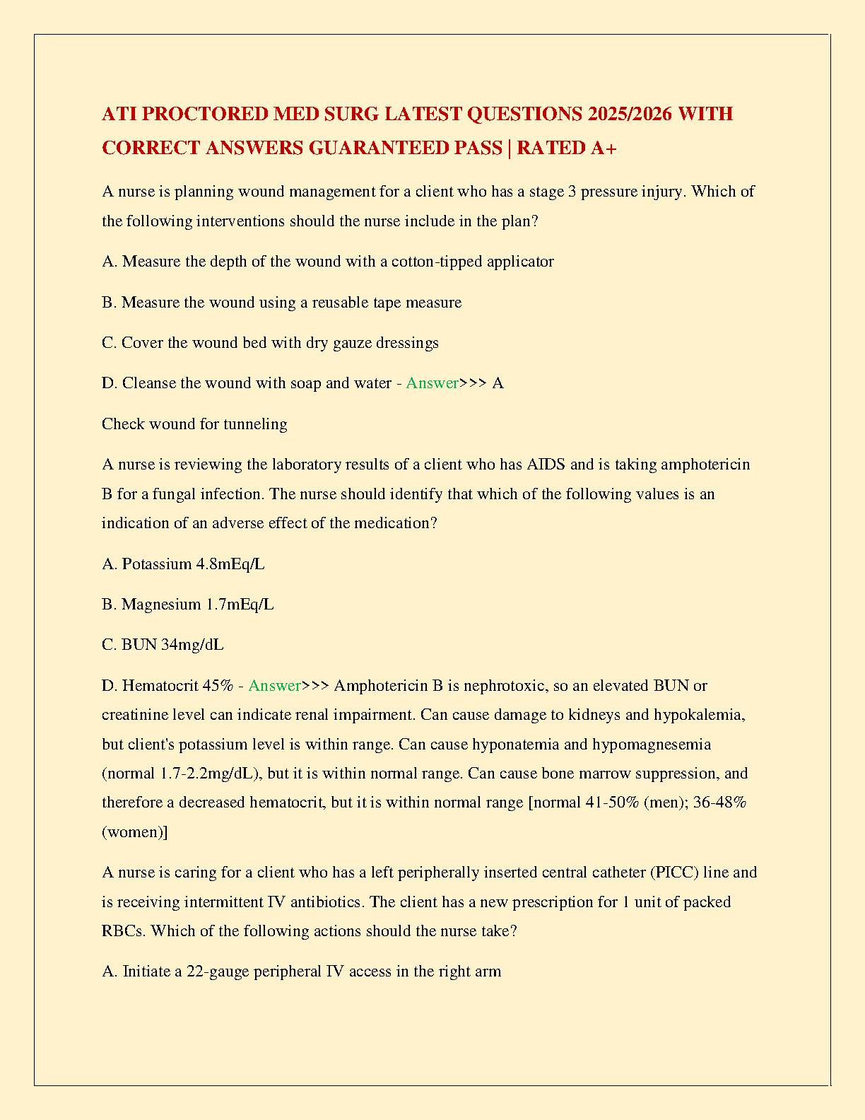 Prepare to excel in your ATI Proctored Med Surg exam with our comprehensive and fully updated study guide for the 2025/2026 academic year. This essential resource provides a complete set of the latest exam questions, each paired with a verified correct answer and detailed rationale to enhance your understanding. Meticulously designed to help you pass on your first attempt and secure a top grade, this guide is the key to mastering complex medical-surgical nursing concepts. Boost your confidence and walk into your exam ready to achieve an A+.