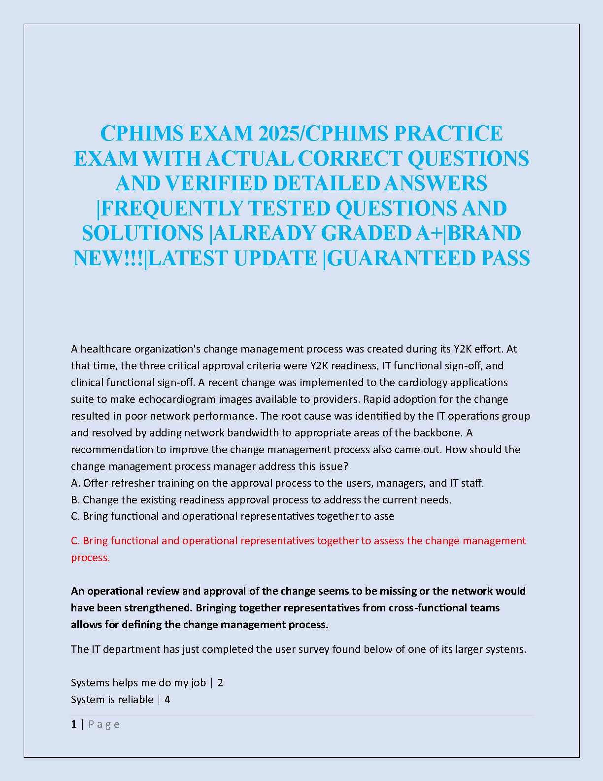 Ace your CPHIMS certification exam on the first try with our comprehensive Test Bank for the CPHIMS Review Guide, 4th Edition. This essential study tool, aligned with the latest 2025/2026 exam syllabus, provides a complete collection of verified practice questions, detailed answers, and in-depth solutions. Developed by experts and based on the official guide by Daiker, Gensinger, and HIMSS, this resource covers all critical areas of healthcare information and management systems. Master key concepts, build your confidence, and walk into your exam fully prepared to pass. Say goodbye to resits and hello to your CPHIMS certification!