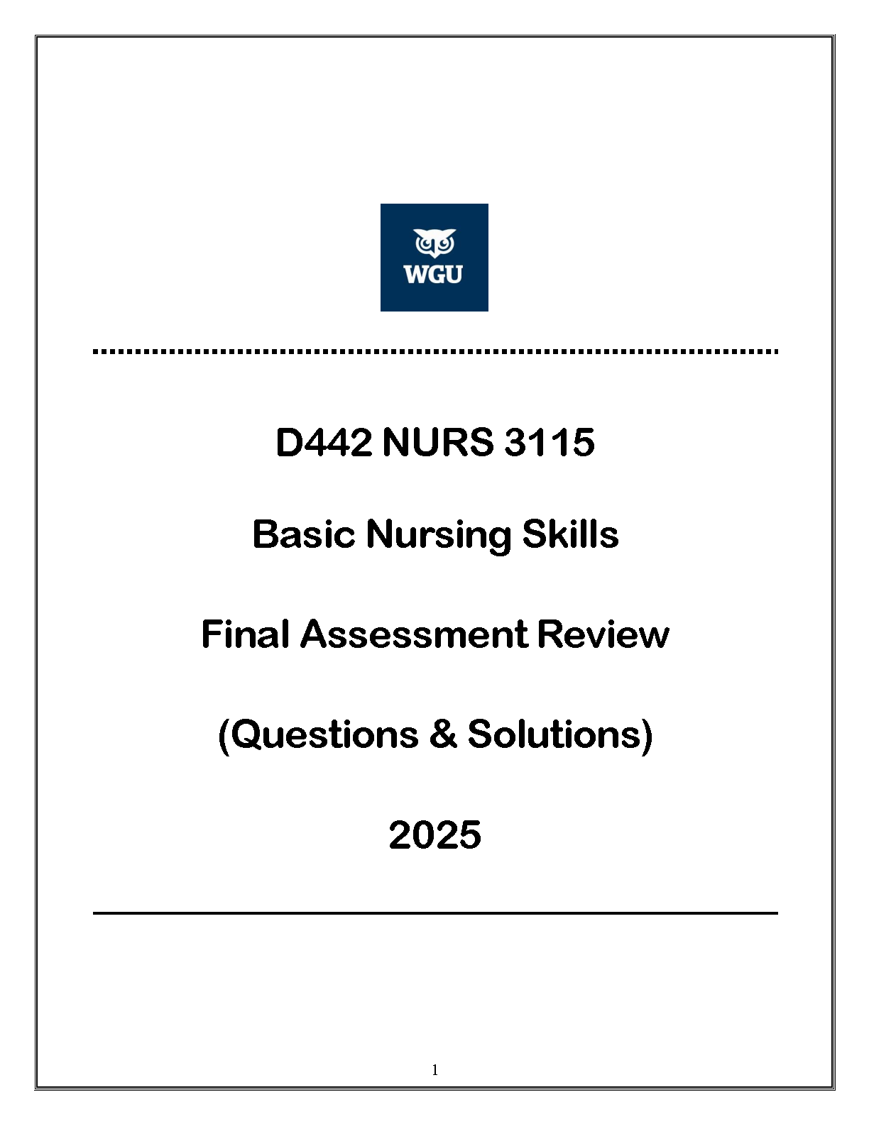 WGU D442 NURS 3115 Basic Nursing Skills Final Assessment Test Bank (Questions & Solutions) | Latest 2025 Edition to Ace Your Exam
