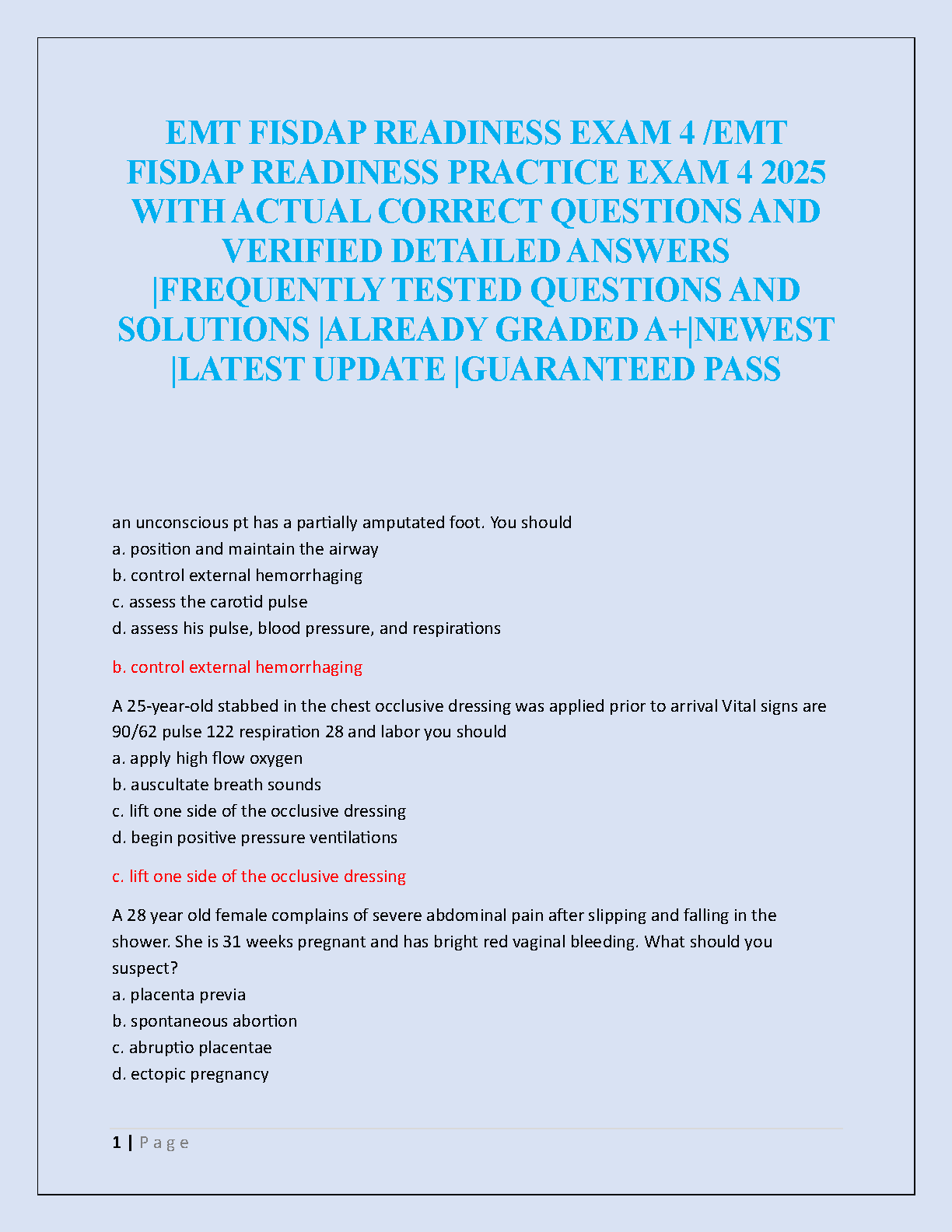 EMT FISDAP Readiness Exam 4 Test Bank 2025/2026 | Verified Questions & Answers for A+ Grade