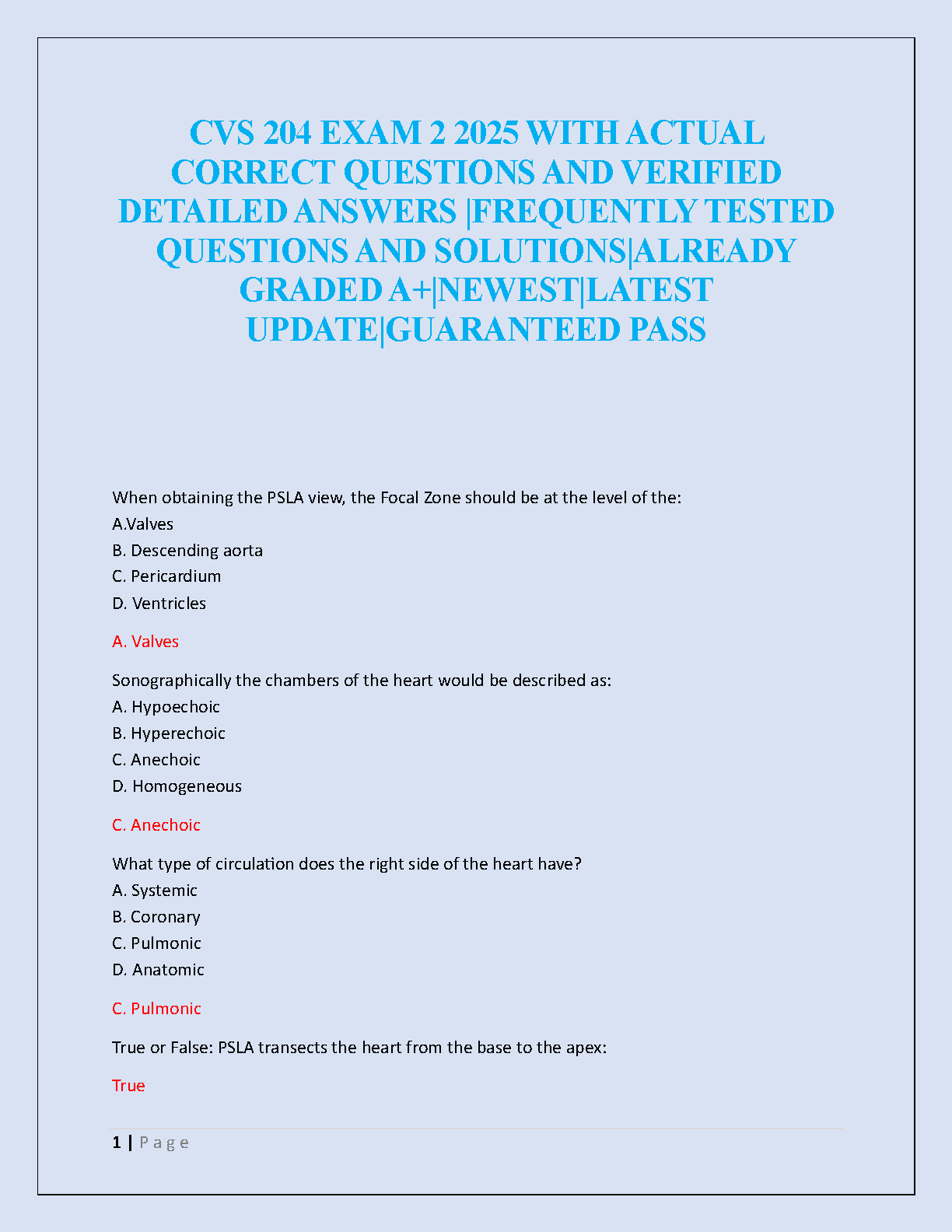 Excel in your CVS 204 Exam 2 with our premium test bank, meticulously updated for the 2025/2026 academic year. This resource is your key to success, featuring a comprehensive collection of frequently tested questions and 100% correct, verified answers. Designed to help you master complex cardiovascular concepts and pass on your first attempt, this guide eliminates guesswork and builds confidence. Secure your A+ grade and avoid resits with this ultimate study solution.