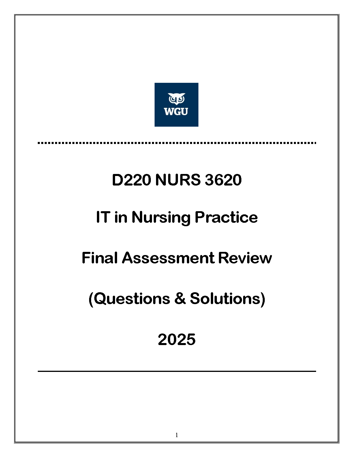 D220 NURS 3620 IT in Nursing Practice Final Assessment Test Bank | WGU 2025 Latest Edition | Questions & Verified Solutions