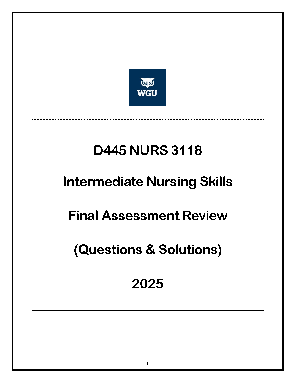 Ace your WGU D445 NURS 3118 Final Assessment with this comprehensive review guide for 2025. This resource provides a complete set of questions and detailed solutions covering all key topics in Intermediate Nursing Skills. Designed to help you master the material efficiently, this study guide is your ultimate tool for passing the exam on your first try and excelling in your nursing program. Download now to start preparing with confidence.