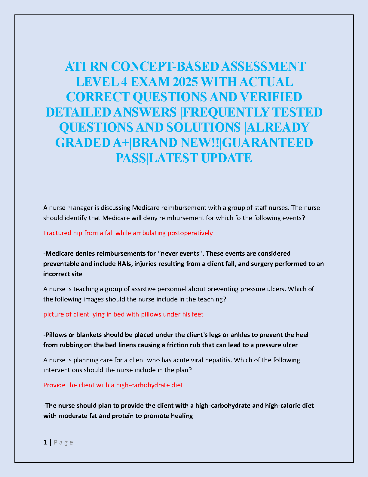 ATI RN Concept-Based Assessment Level 4 Exam 2025 Test Bank | by ATI Nursing Education | Verified Questions & Answers