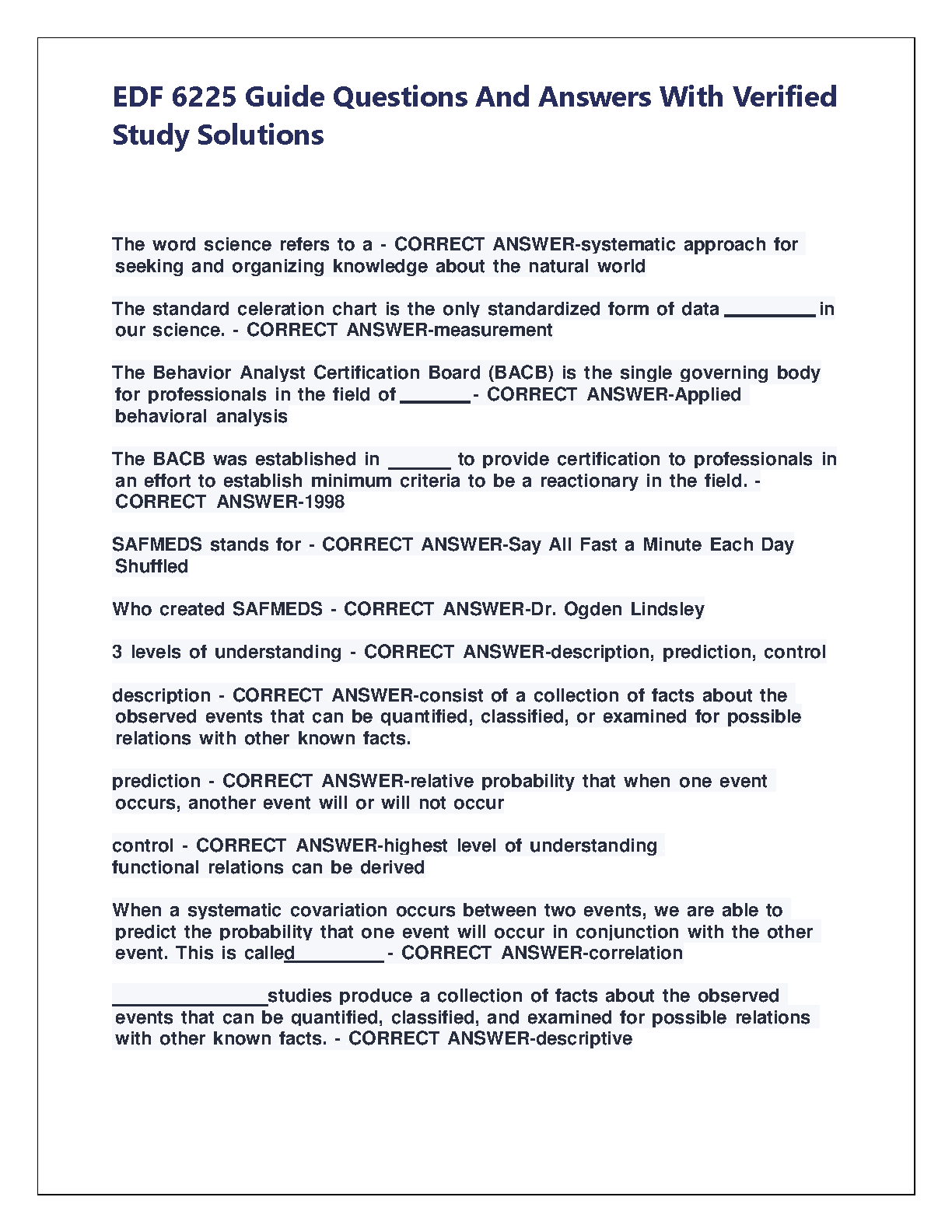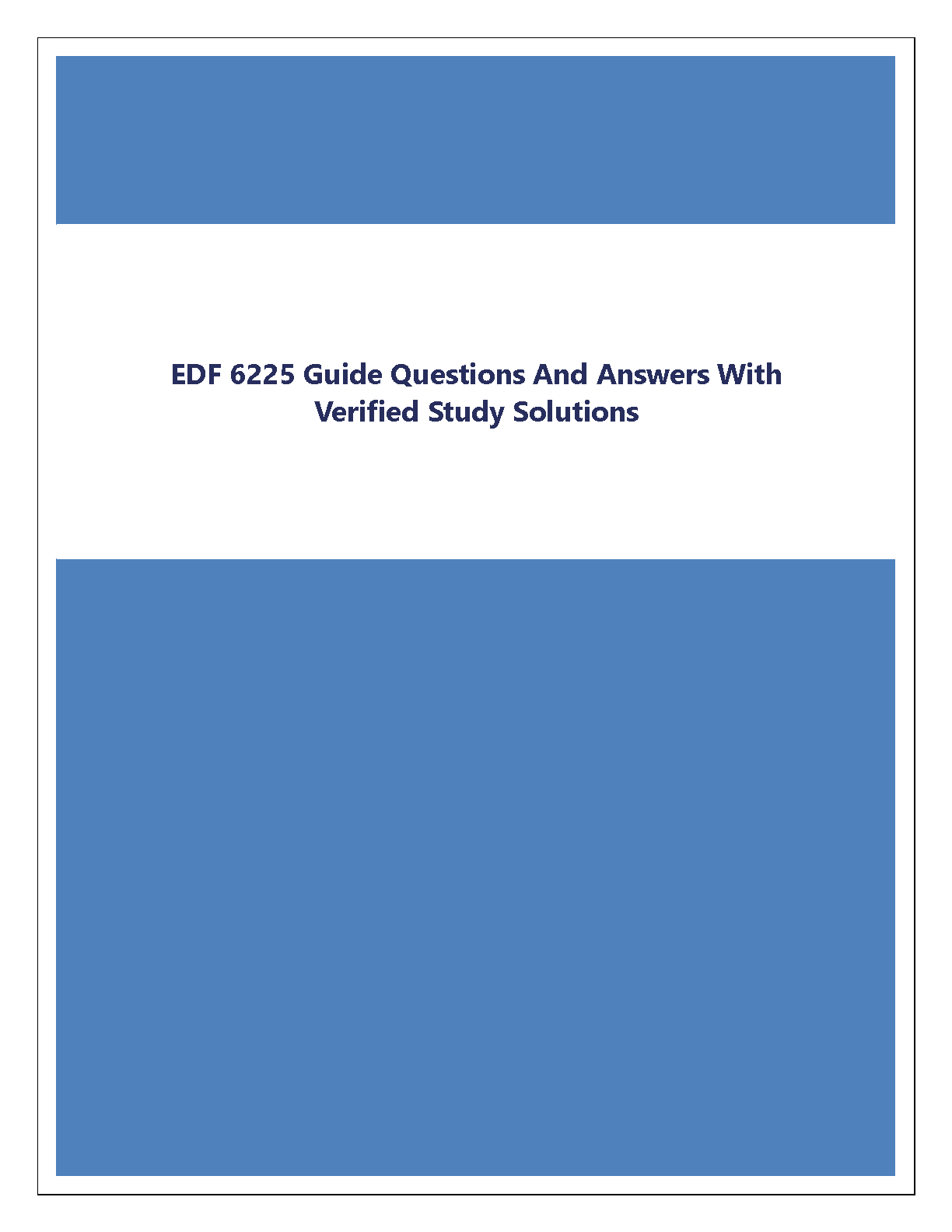 Ace your EDF 6225 Single Subject Research Design course with our latest 2025/2026 test bank. This comprehensive study guide features a complete collection of guide questions coupled with expertly verified answers and solutions. Designed to cover all key topics, this resource is your ultimate tool to prepare effectively, master complex concepts, and pass your exams on the first attempt. Avoid resits and achieve top grades with our trusted study solutions for EDF 6225.