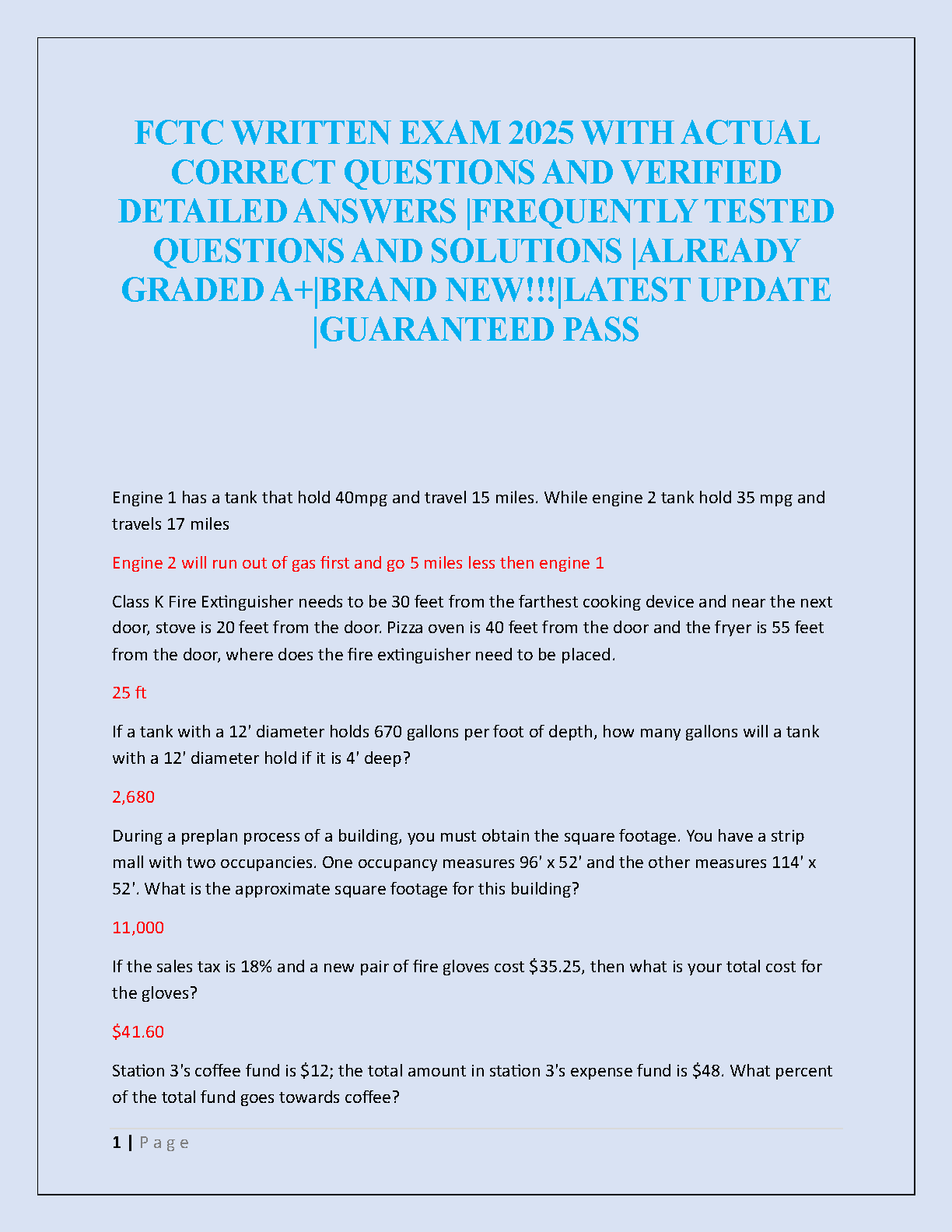 FCTC Written Exam 2025 Test Bank: A+ Graded Questions and Verified Answers Study Guide for Aspiring Firefighters