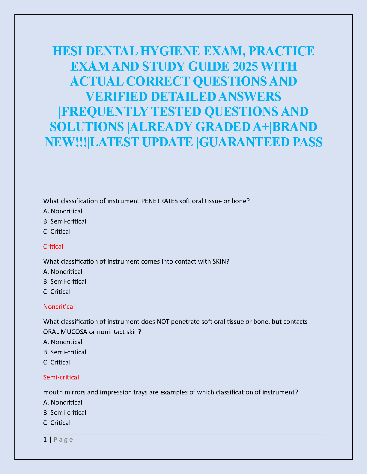 HESI Dental Hygiene Exam 2025-2026: Comprehensive Study Guide with Practice Questions and Verified A+ Answers | Guaranteed First-Time Pass