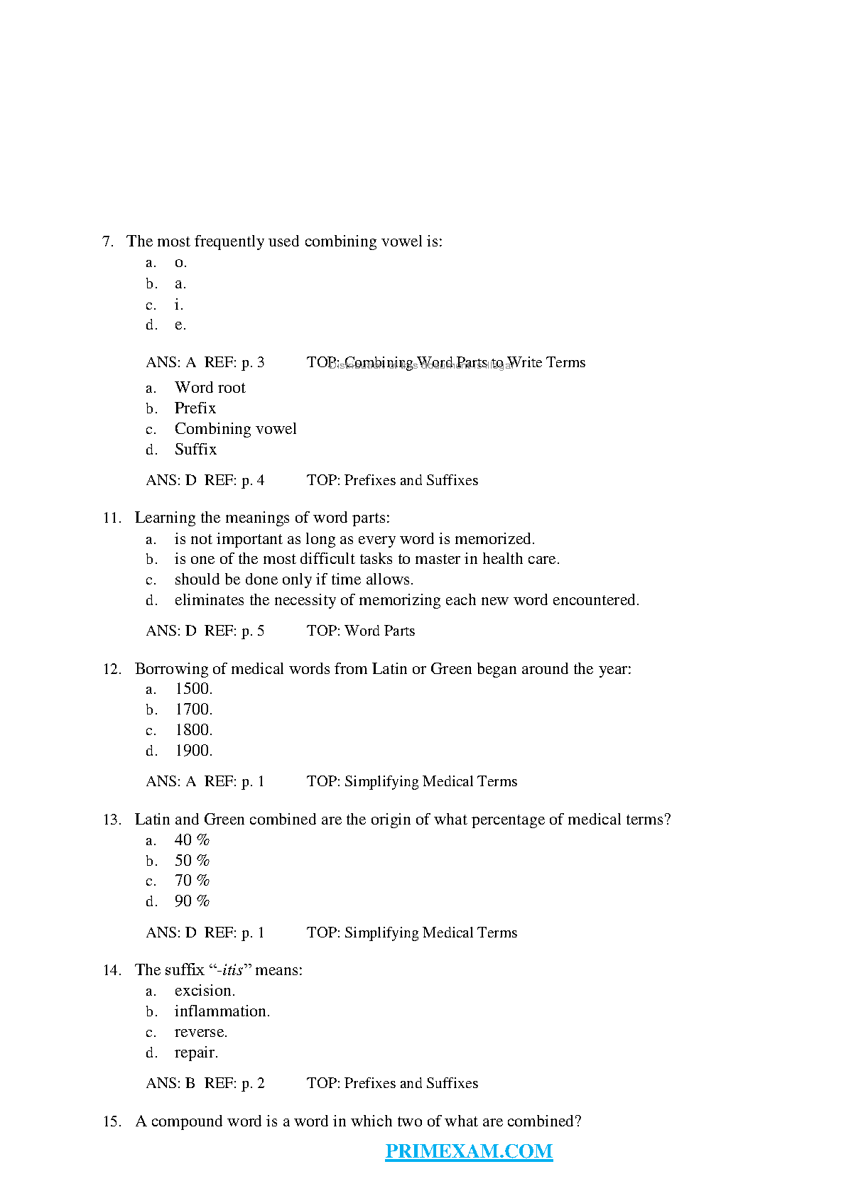 Test Bank for Building a Medical Vocabulary, 9th Edition by Peggy C. Leonard
