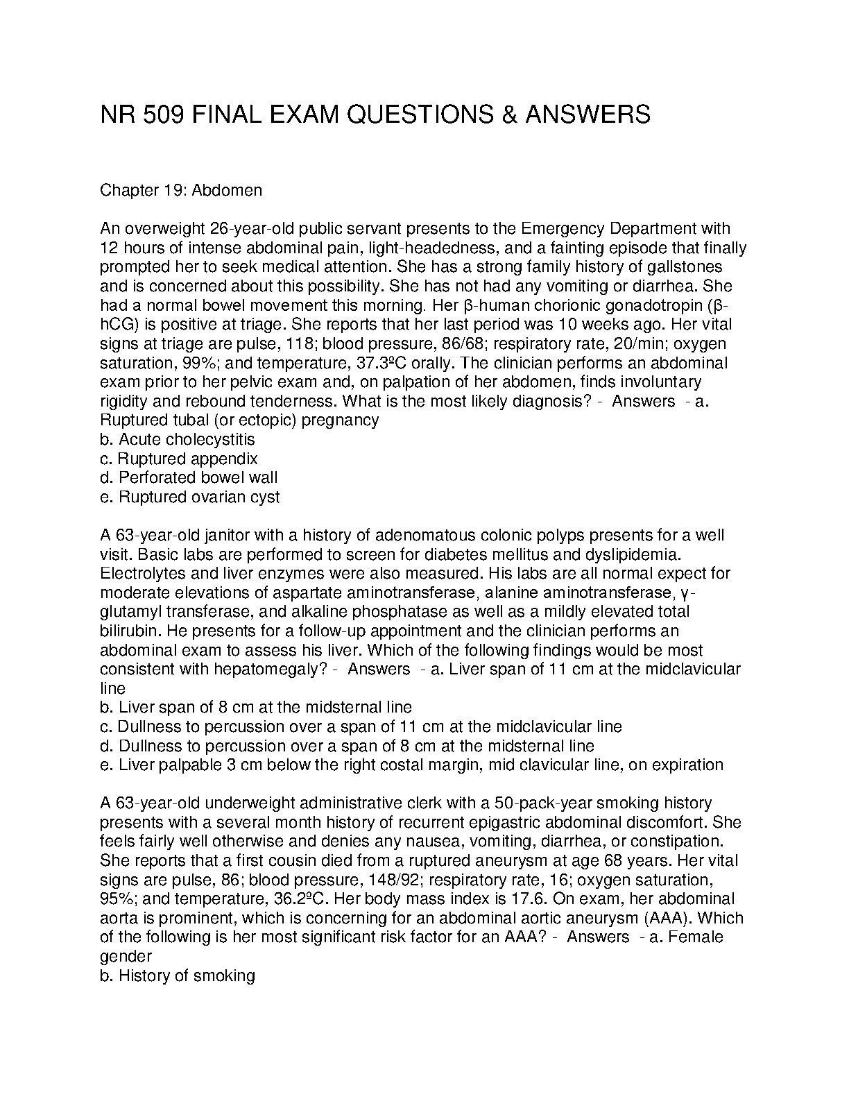 NR 509 Final Exam Test Bank | Verified Questions & Answers for Advanced Physical Assessment | Bickley, Szilagyi, Hoffman & Soriano