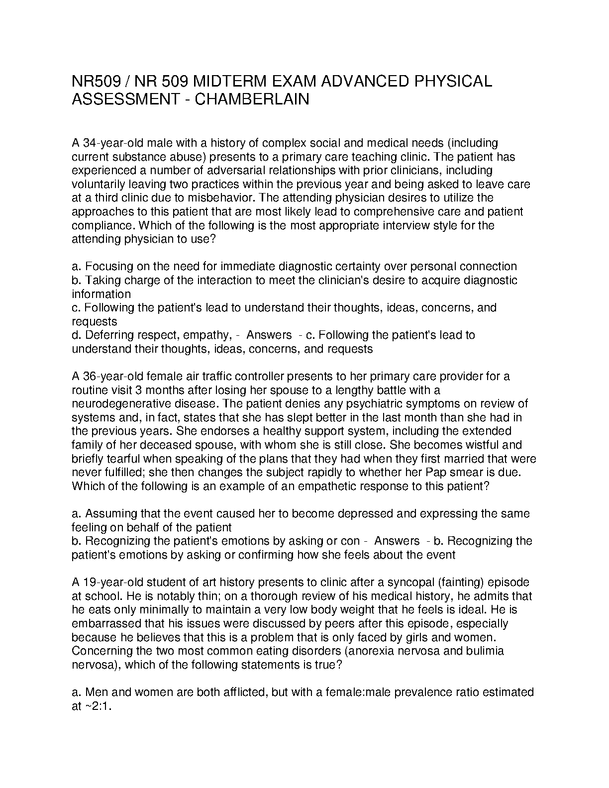 NR 509 Advanced Physical Assessment Midterm Exam - Test Bank with Verified Questions and Answers | Chamberlain University