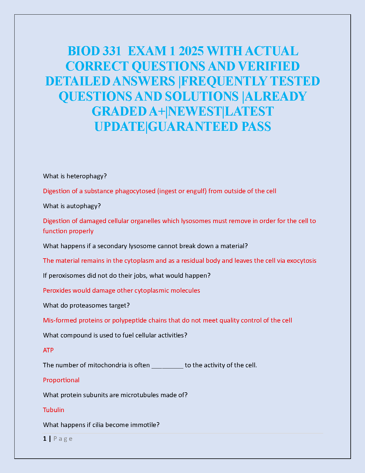 Ace your BIOD 331 Exam 1 with this complete test bank for the 2025-2026 academic year. This A+ graded study resource provides a comprehensive collection of actual, frequently tested exam questions, each with a verified and detailed answer. Master crucial topics and walk into your exam with the confidence to pass on your first attempt. This is the latest, most up-to-date guide to guarantee your success in BIOD 331.