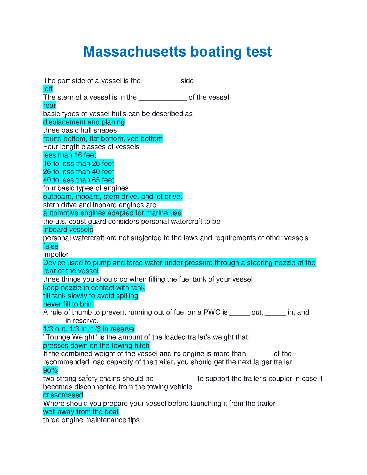Ace your Massachusetts Boater Safety Exam with ease! This comprehensive test bank for the 2024/2025 season provides a complete set of verified questions and expertly answered solutions, covering all essential topics. Master key concepts such as boat terminology (port, stern), vessel classifications, hull shapes, engine types, fueling safety, PWC regulations, and proper trailering techniques. This study guide is designed to give you the confidence you need to pass your boating test on the first try and get your Boating Safety Certificate without any resits. Get on the water faster with this ultimate exam preparation resource.