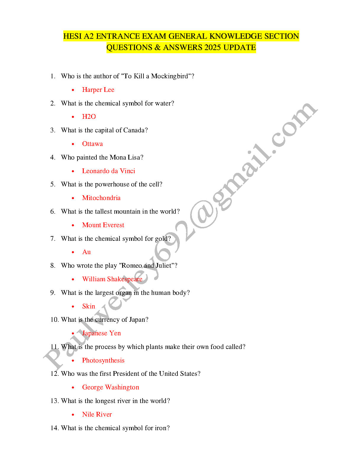 HESI A2 General Knowledge Test Bank: Latest 2025/2026 Edition with Verified Questions and Answers for First-Attempt Success
