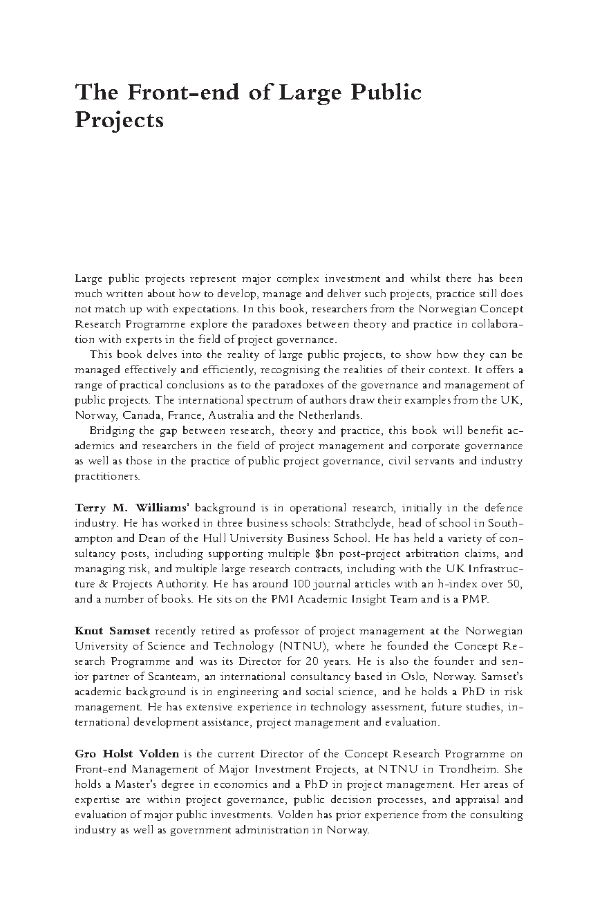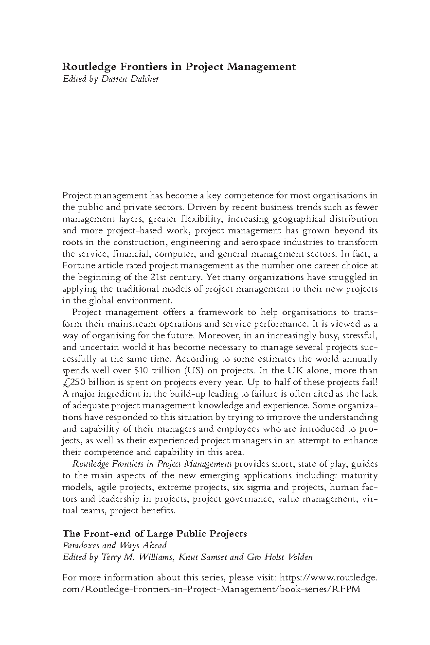Struggling with the complexities of project management? Master the crucial initial stages of large-scale public projects with this comprehensive guide for the 2025/2026 academic year. This essential resource, edited by leading experts Terry M. Williams, Knut Samset, and Gro Holst Volden, provides a state-of-the-art overview of the 'front-end' phase—from initial concept to final commitment. Delve into the inherent paradoxes of project initiation and learn cutting-edge strategies to navigate them effectively. Perfectly designed to help students and professionals excel in their exams and avoid resits, this guide offers critical insights and practical ways forward. Secure your success and build a robust foundation in project management by understanding the most challenging phase of any major project.