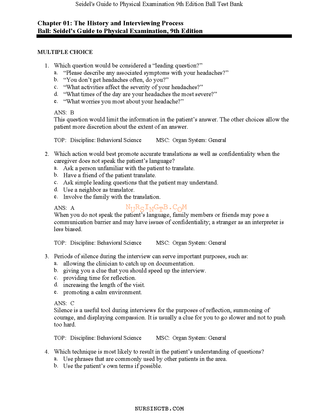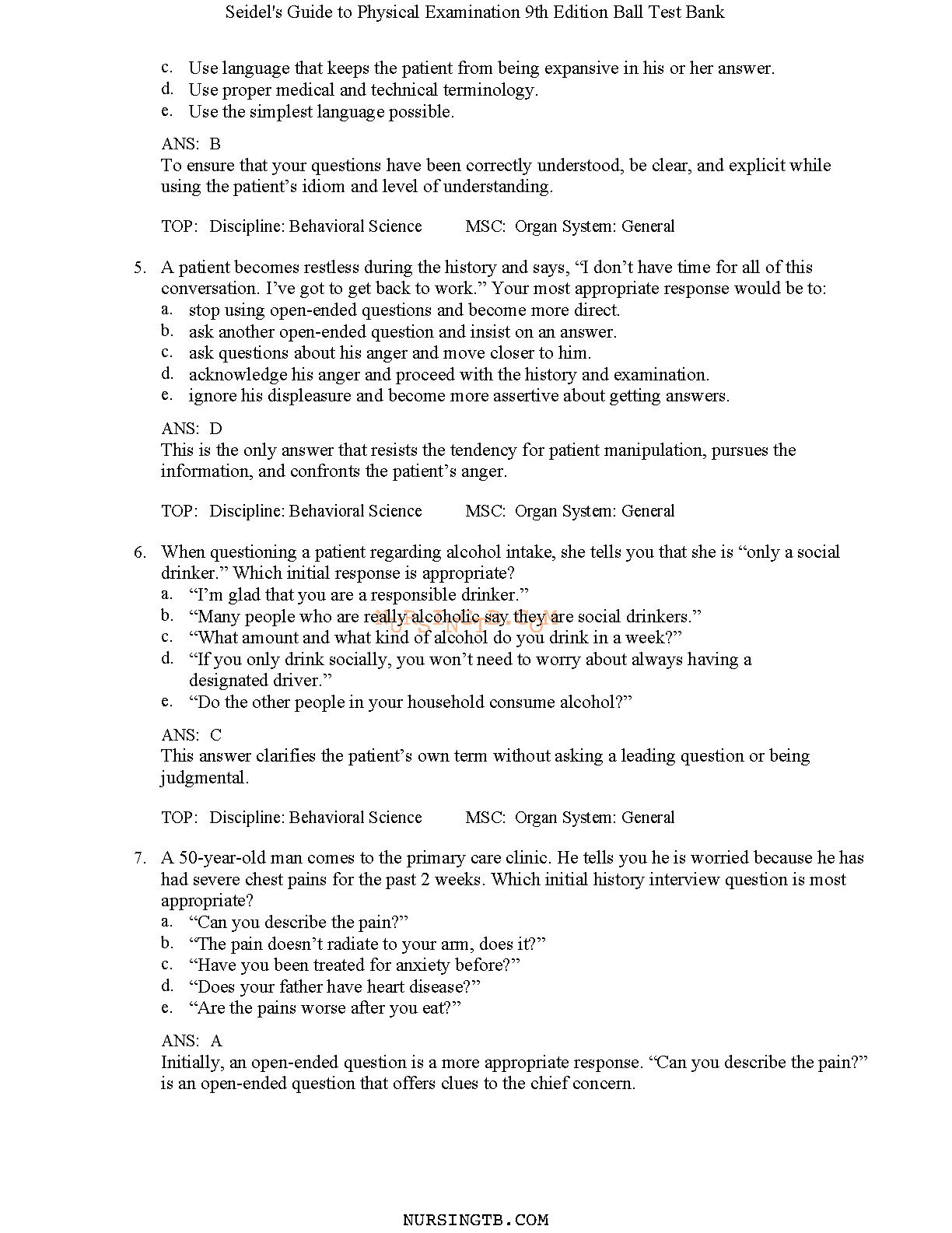 Test Bank for Seidel's Guide to Physical Examination, 9th Edition by Jane W. Ball, Joyce E. Dains, John A. Flynn, Barry S. Solomon, and Rosalyn W. Stewart