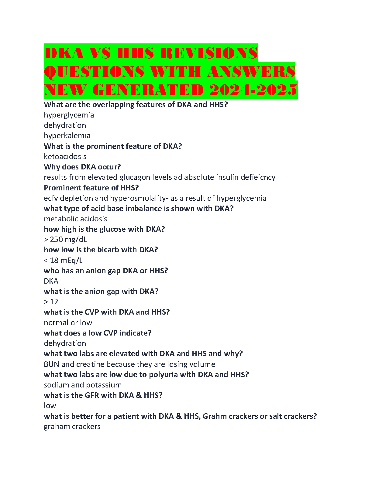 DKA vs. HHS Comprehensive Q&A Exam Elaboration | Latest 2025/2026 Edition to Help You Pass on Your First Attempt
