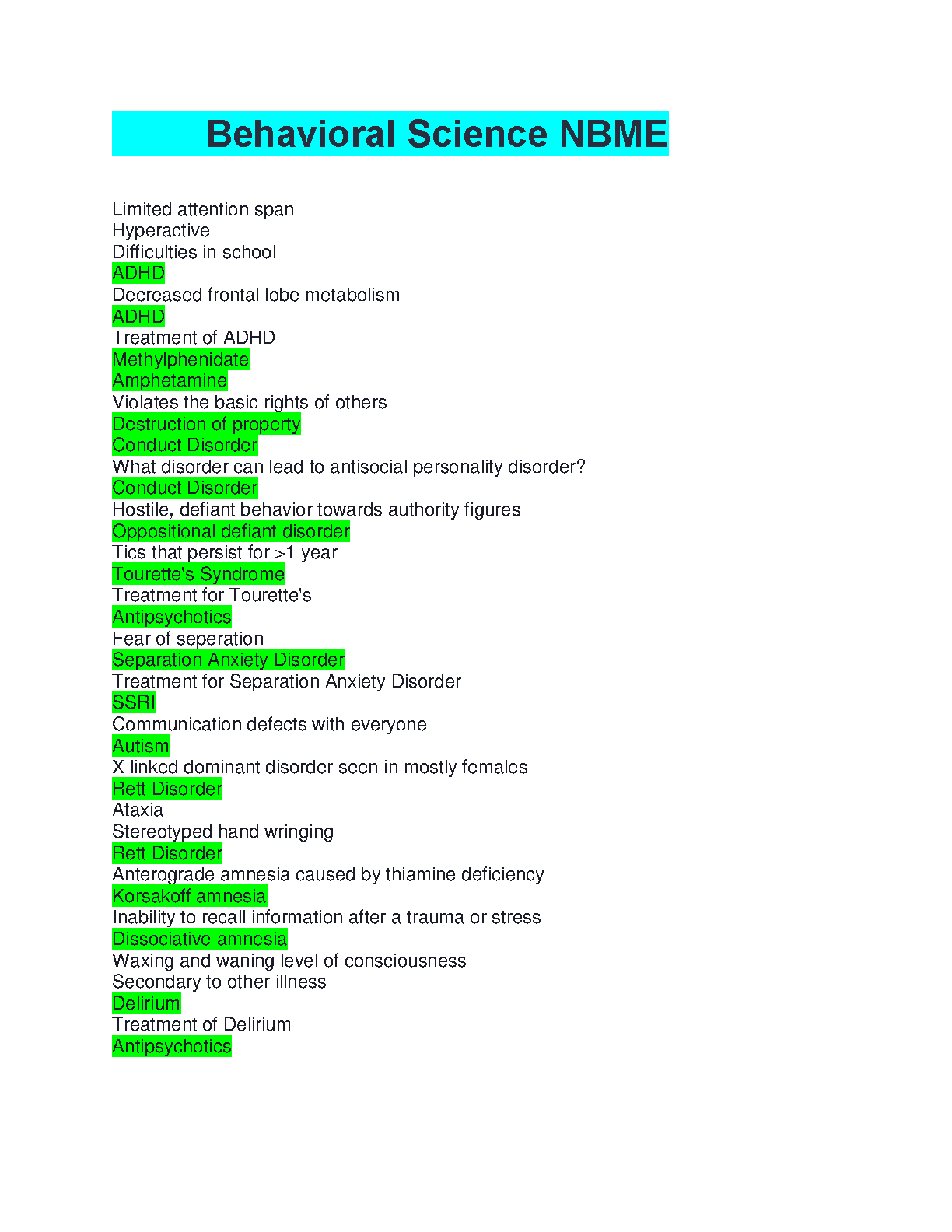 Unlock your full potential for the NBME Behavioral Science exam with this comprehensive and updated study guide for the 2025/2026 academic year. This resource provides a concise summary of all high-yield concepts, from ADHD and Conduct Disorder to Tourette's and Korsakoff amnesia. Designed for efficient learning and quick revision, these notes are your key to mastering complex topics, boosting your confidence, and ensuring you pass your exams on the very first try. Stop worrying about resits and start studying smarter today!