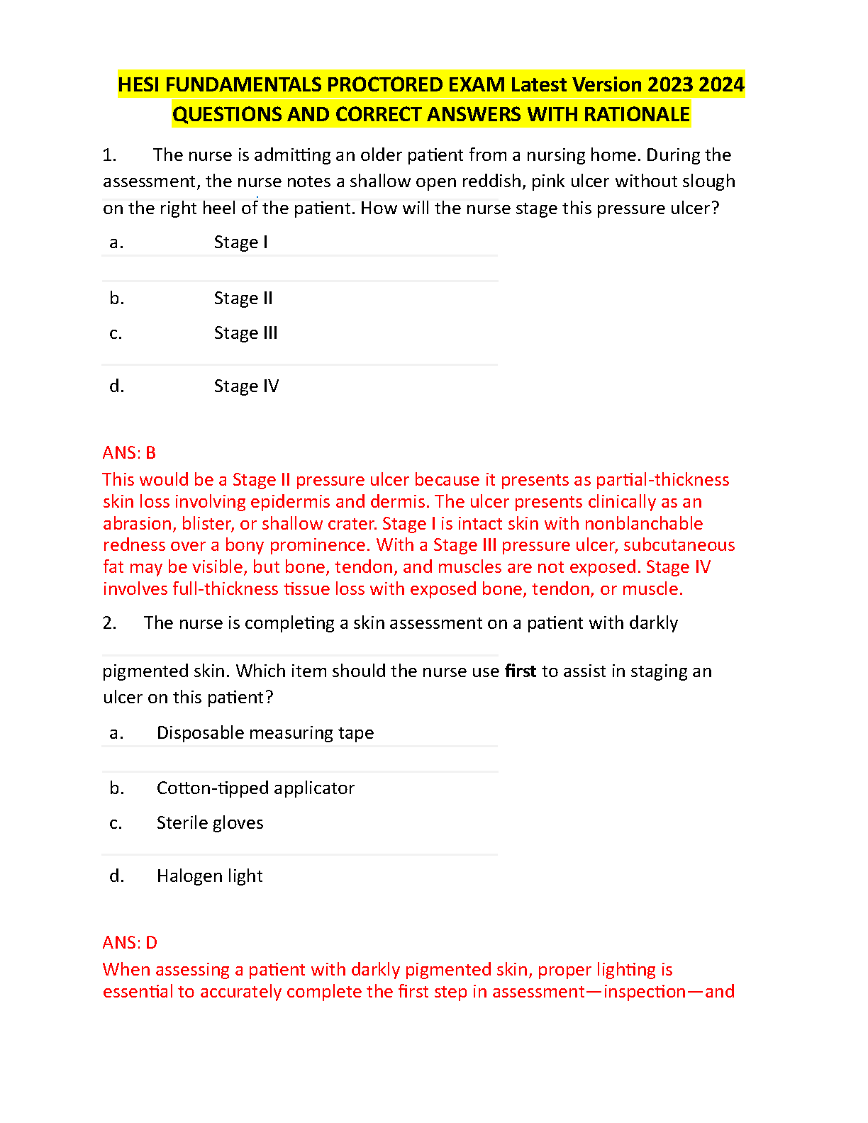 HESI Fundamentals Proctored Exam Test Bank 2025/2026: Comprehensive Questions, Answers, and Rationales for First-Attempt Success