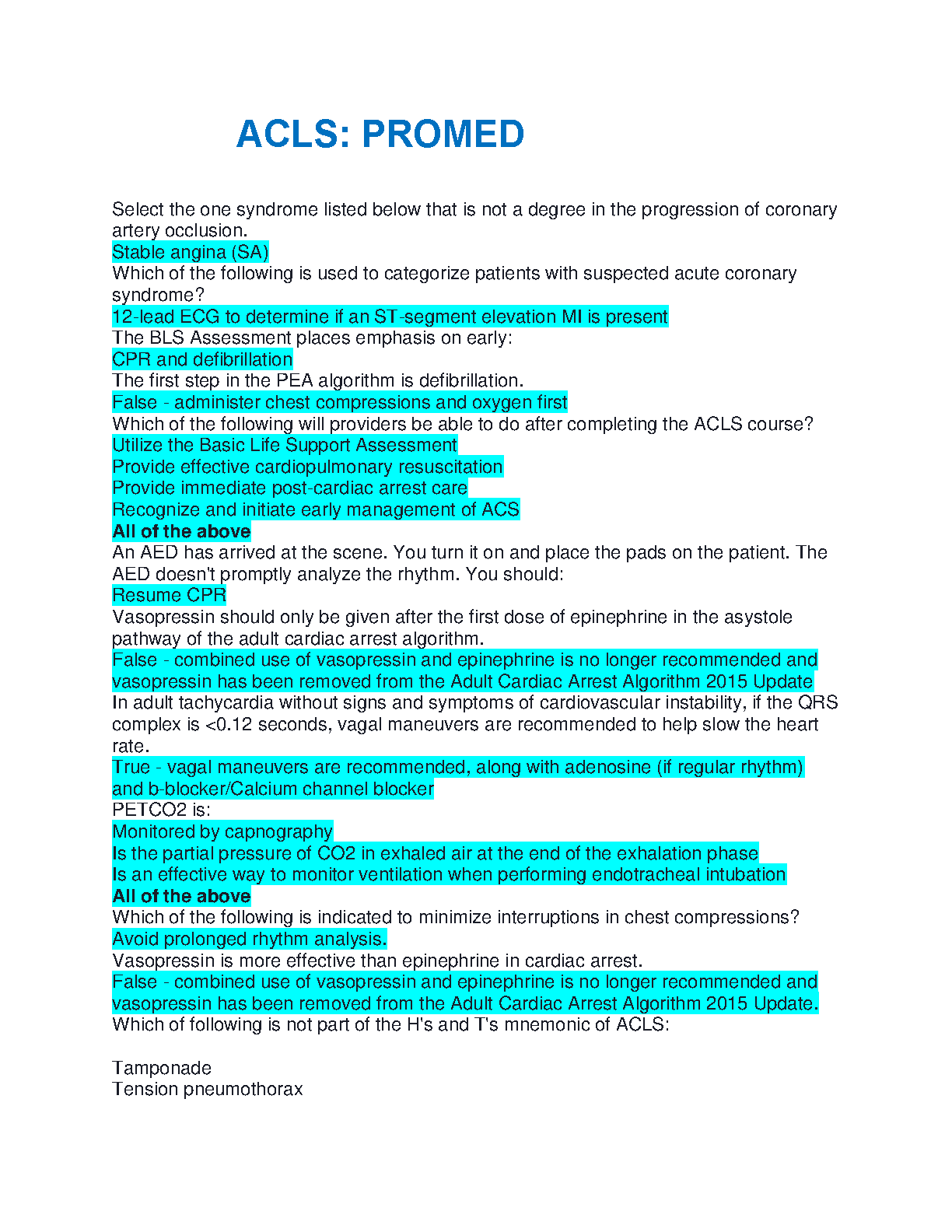 PROMED ACLS Certification Exam Test Bank | Latest Edition Questions and Answers