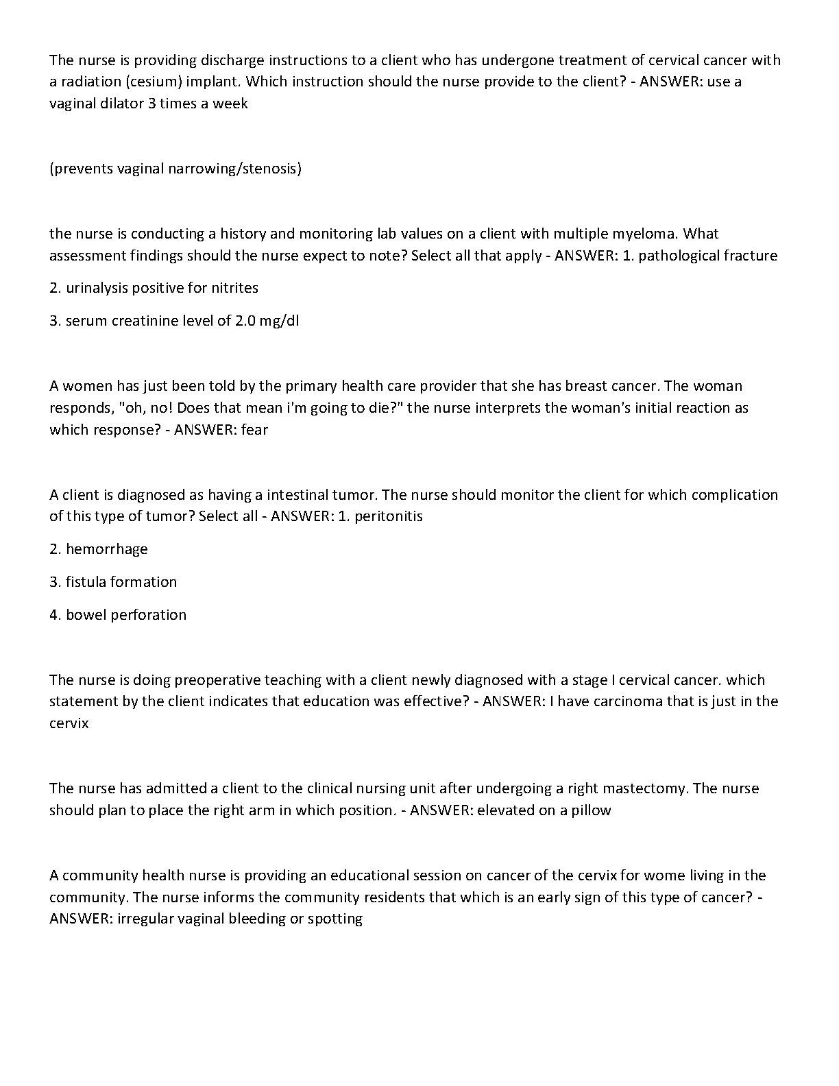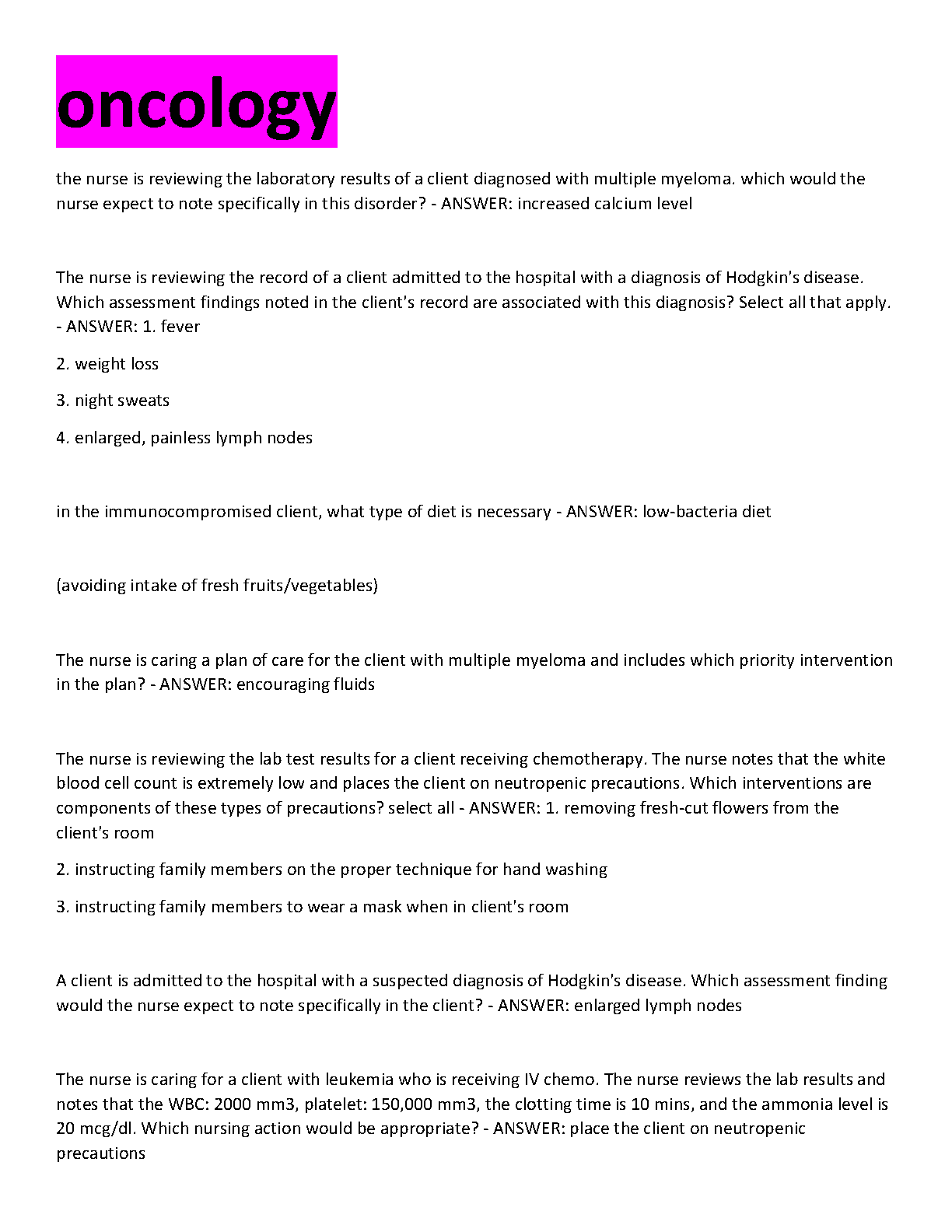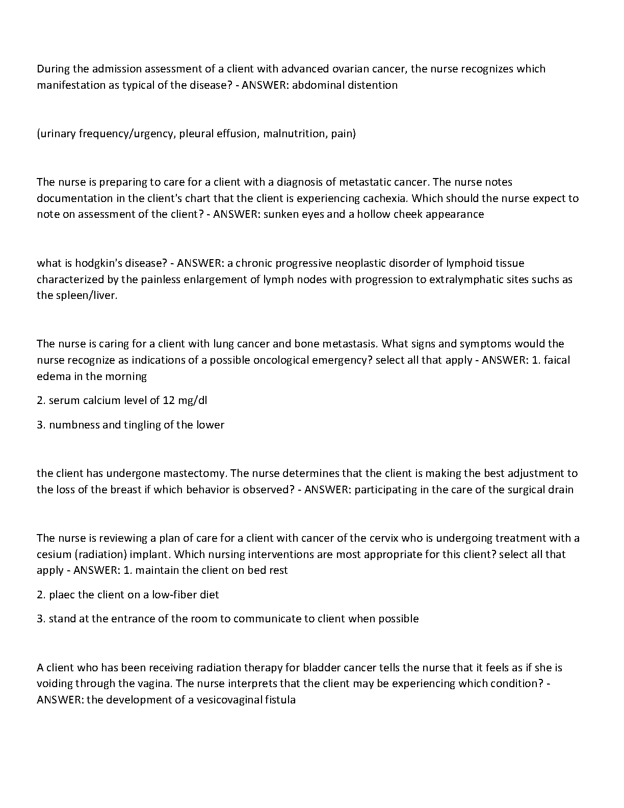 Oncology Nursing Test Bank (Q&A) for Medical-Surgical Nursing, 11th Edition by Ignatavicius, Workman, Rebar, and Heimgartner